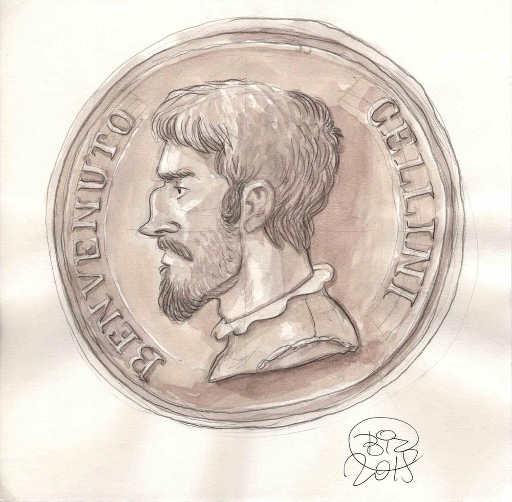 Vincenzo Bizzarri, Benvenuto Cellini on Coin, Illustration, 2015