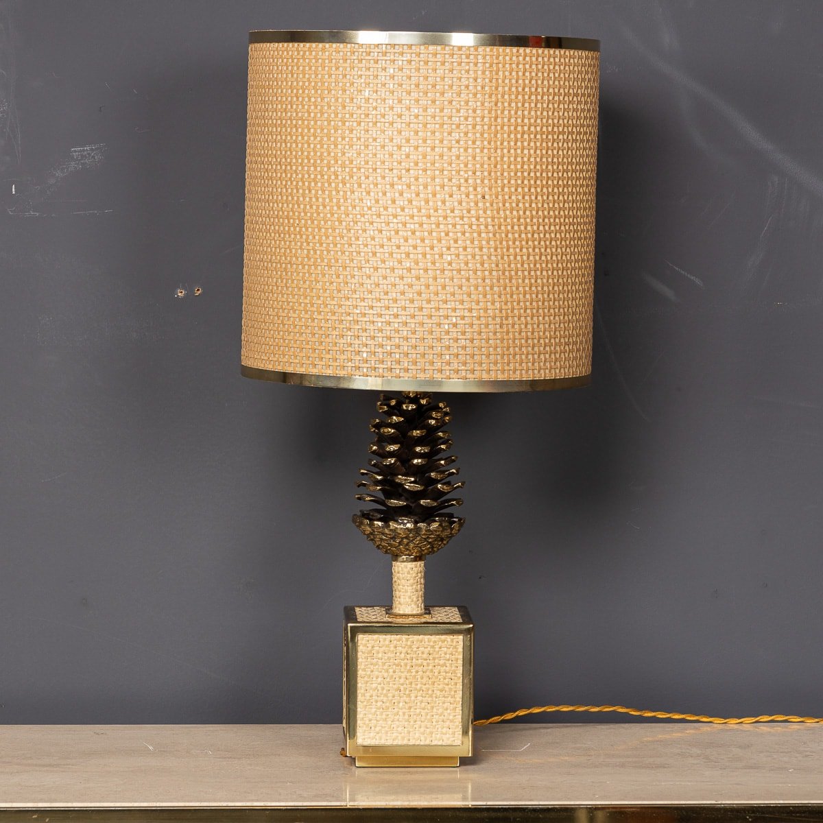 Vintage 20th Century Italian Bergere Lamp with Pine Cone Detailing, 1970s