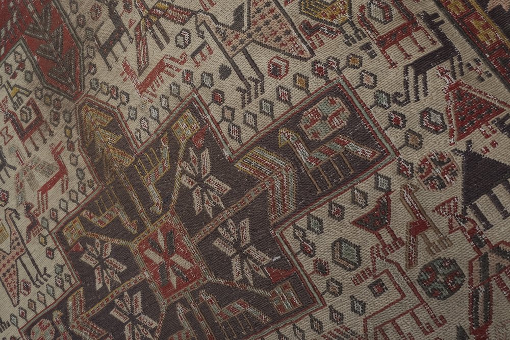 Vintage Animal Pattern Soumac Kilim Runner Rug