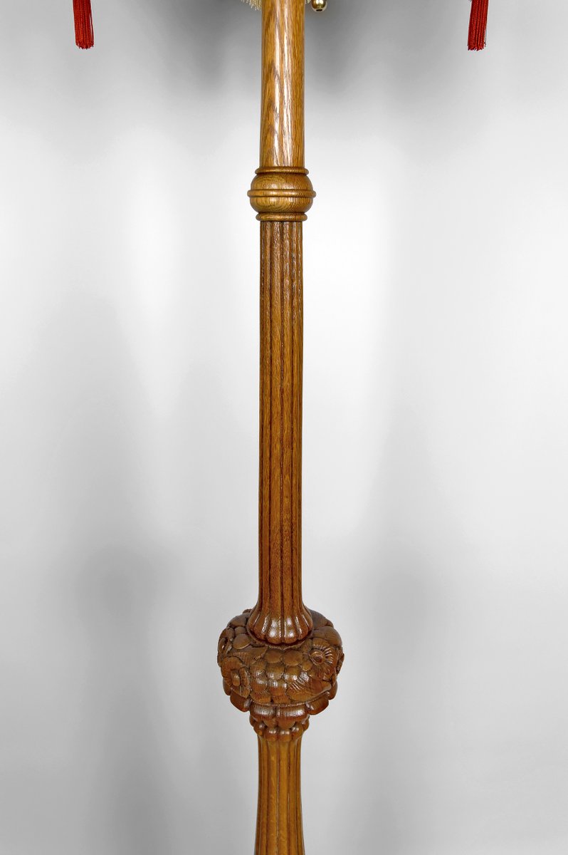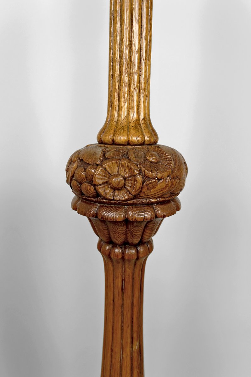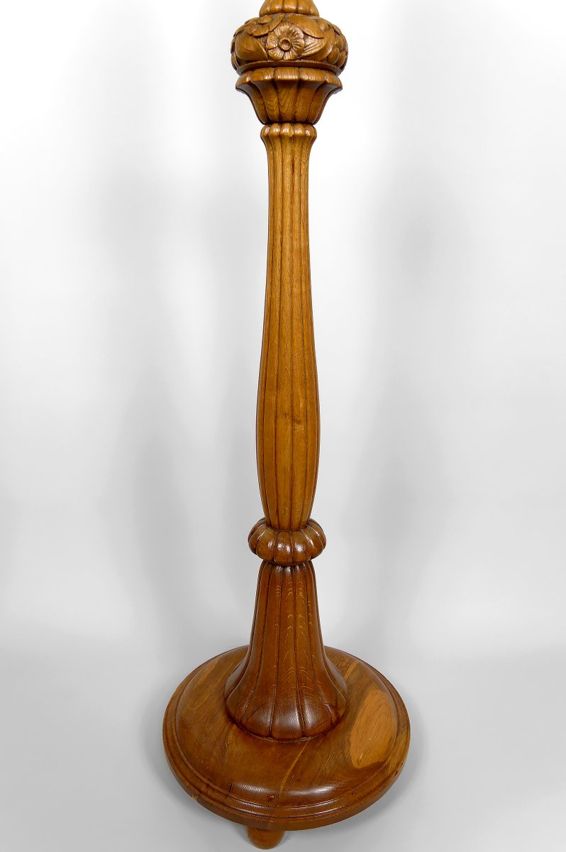 Vintage Art Deco Floor Lamp in Carved Oak, 1920