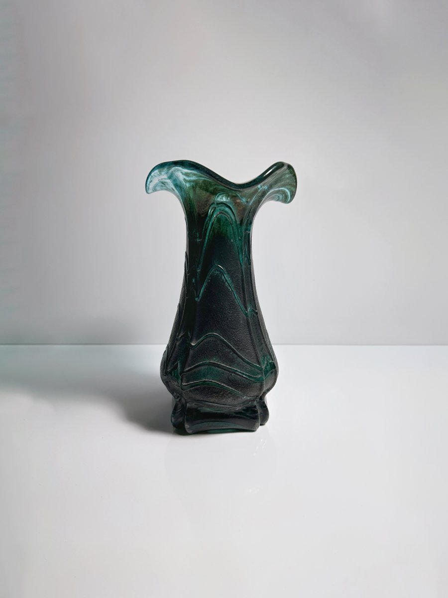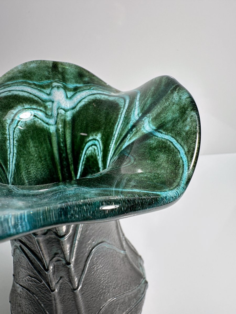 Vintage Art Nouveau Iridescent Glass Flower Vase Green from Weinfurtner Glashütten, Germany, 1980s