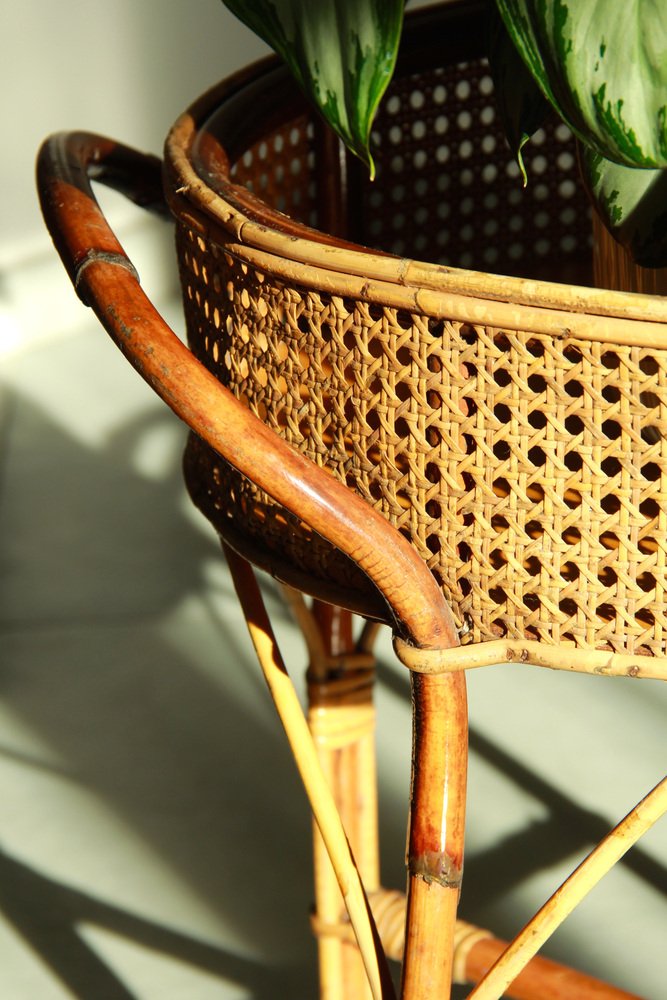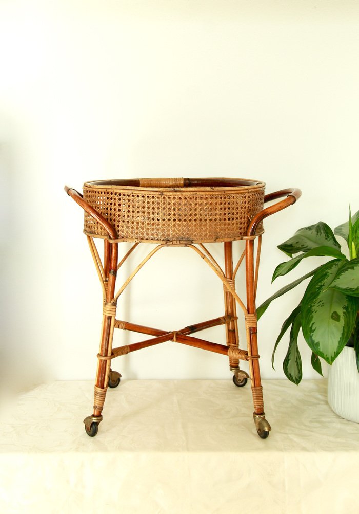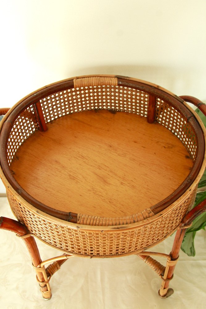 Vintage Bamboo and Viennese Straw Bar Cart, Italy, 1970s
