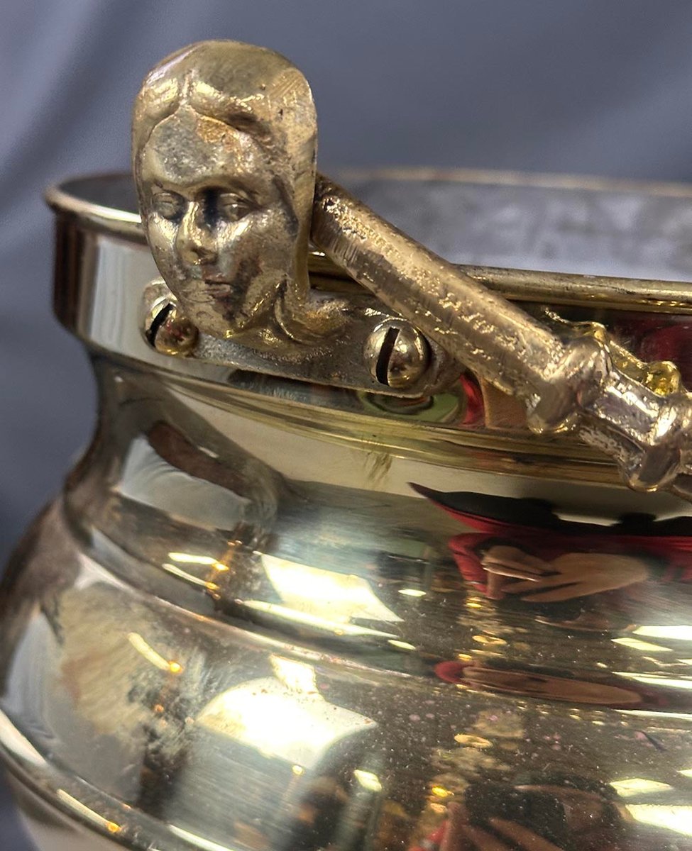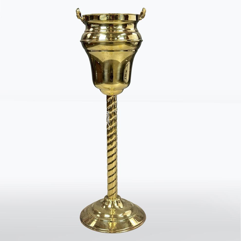 Vintage Brass Champagne Cooler on Pedestal, 1940s