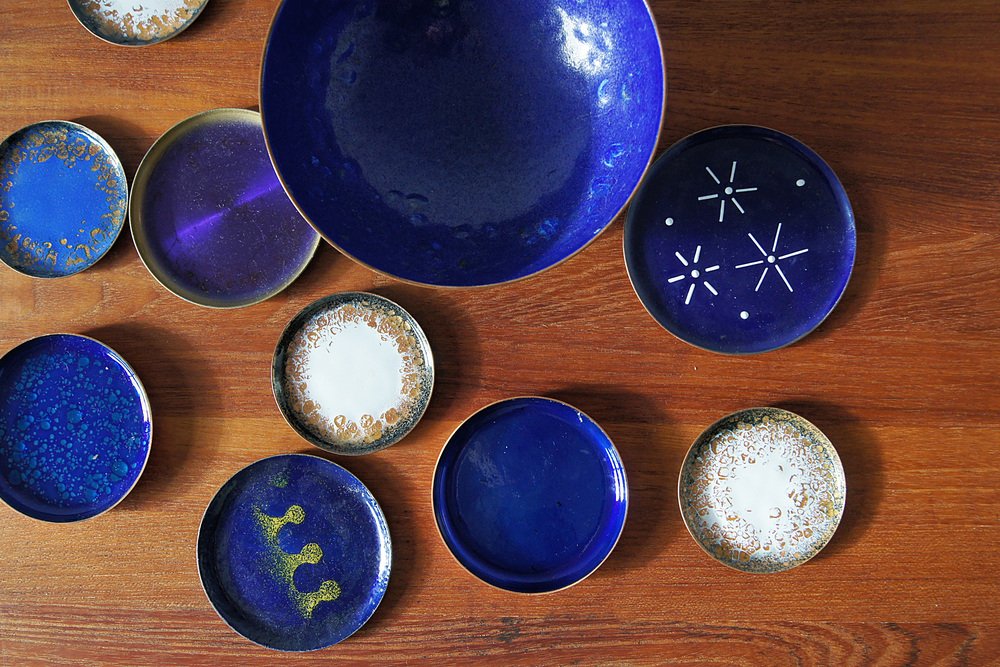 Vintage Brass & Enameled Plates, Set of 10