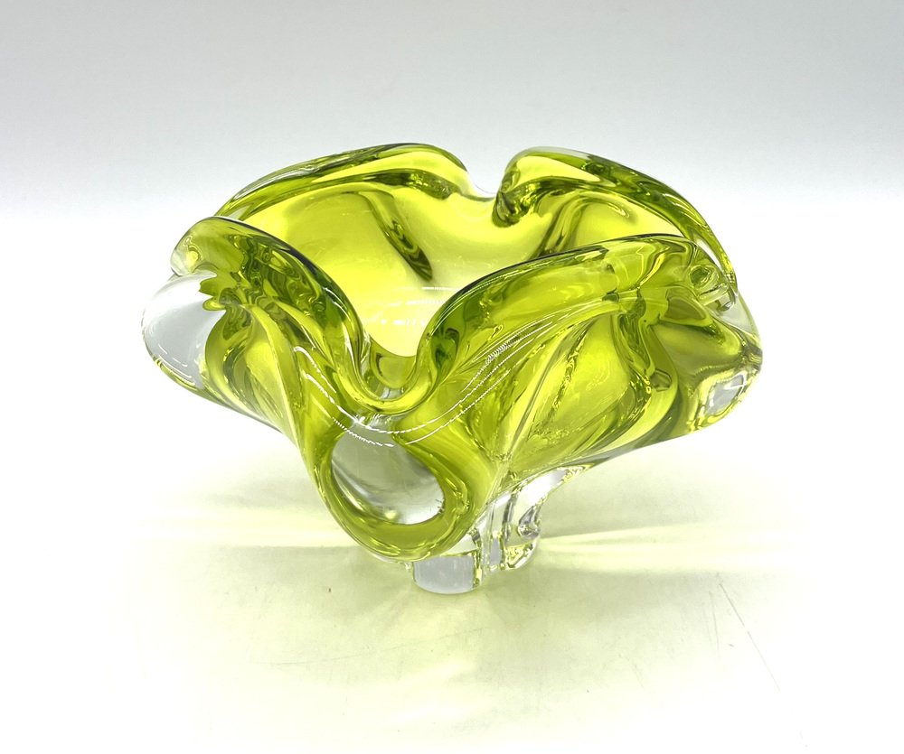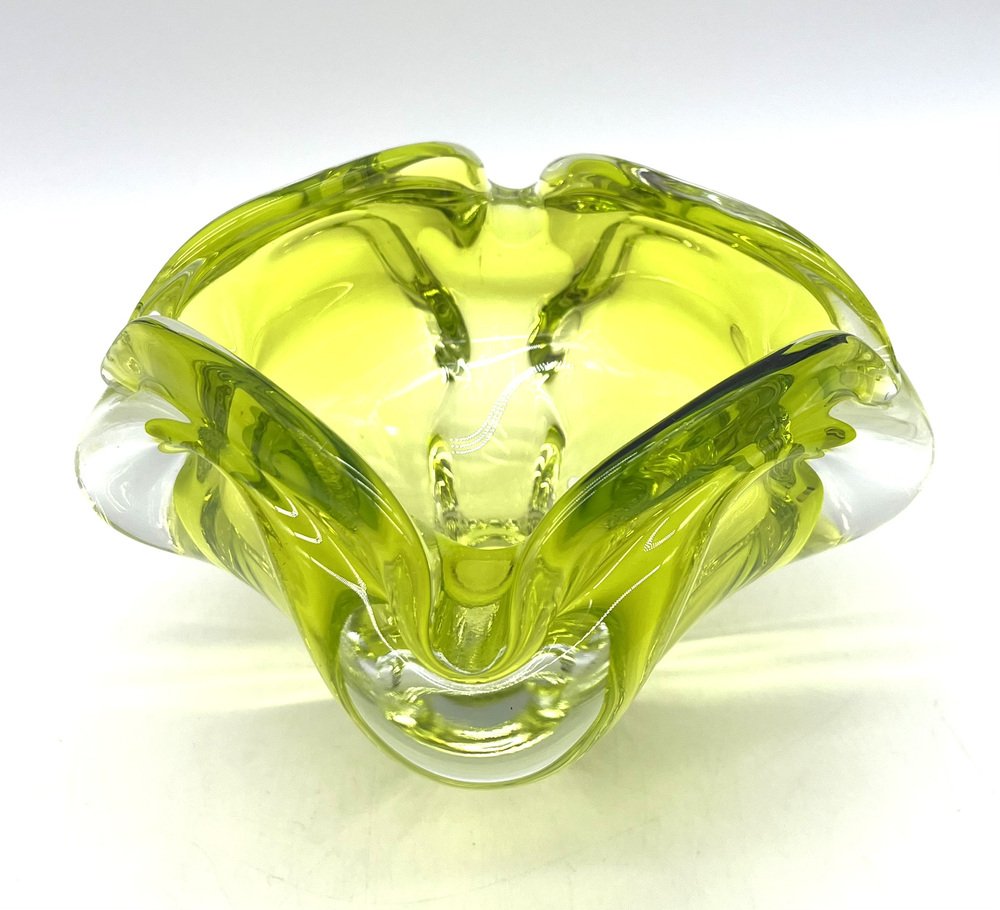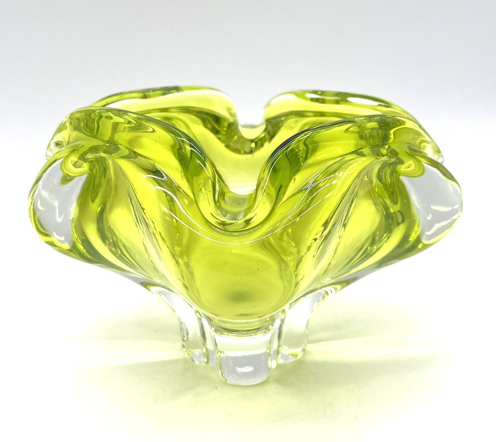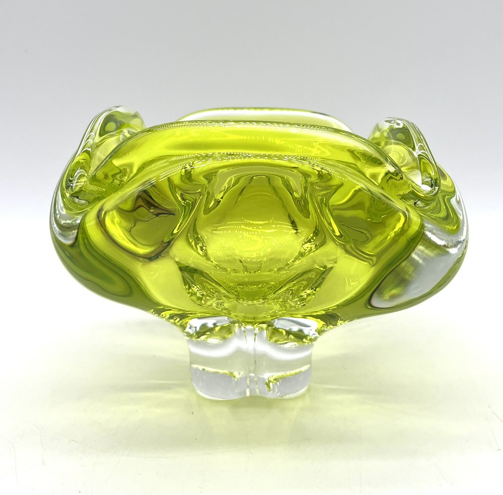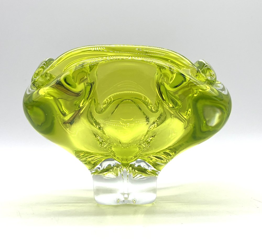 Vintage Chartreuse Art Glass Bowl by Josef Hospodka for Chribska, 1950s