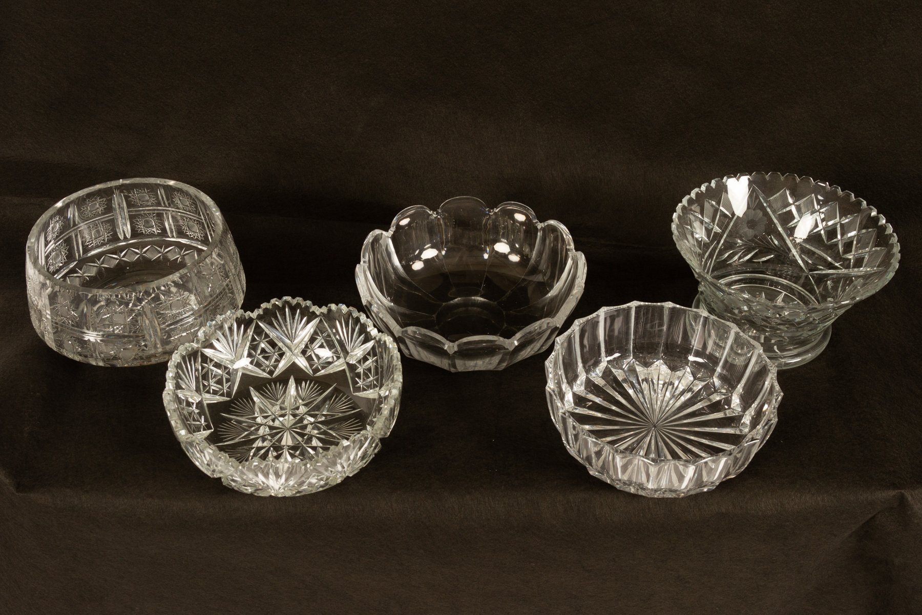 Vintage Crystal Bowls, 1940s, Set of 5