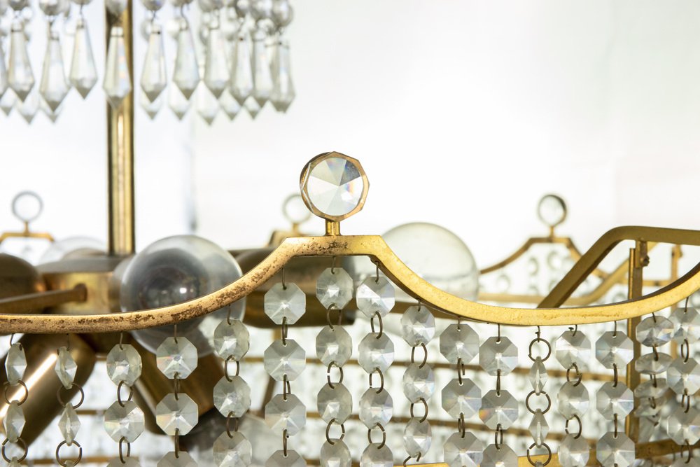Vintage Crystal Drops Chandelier, Italy, 1970s