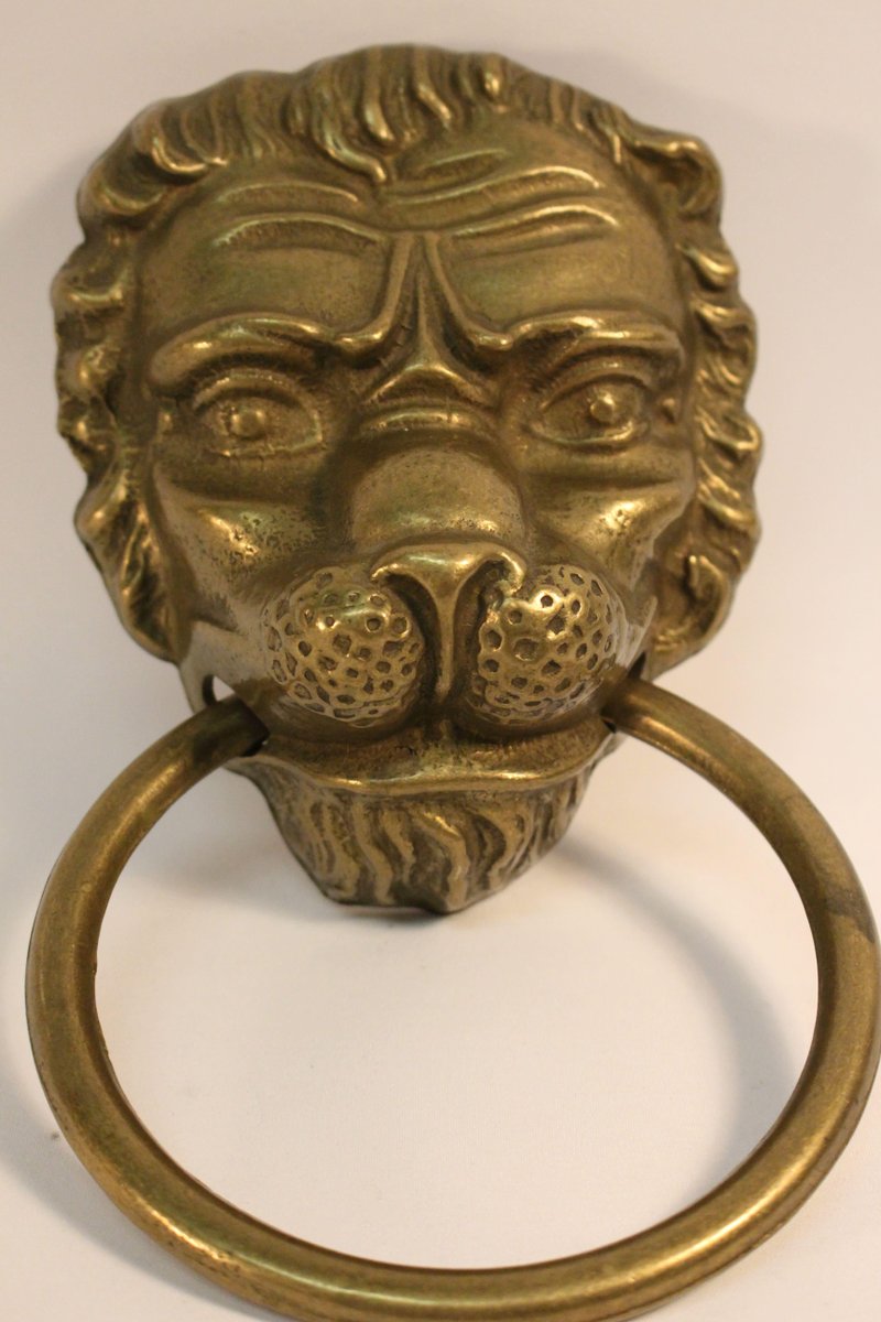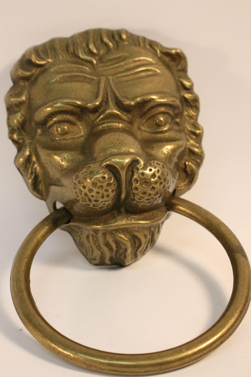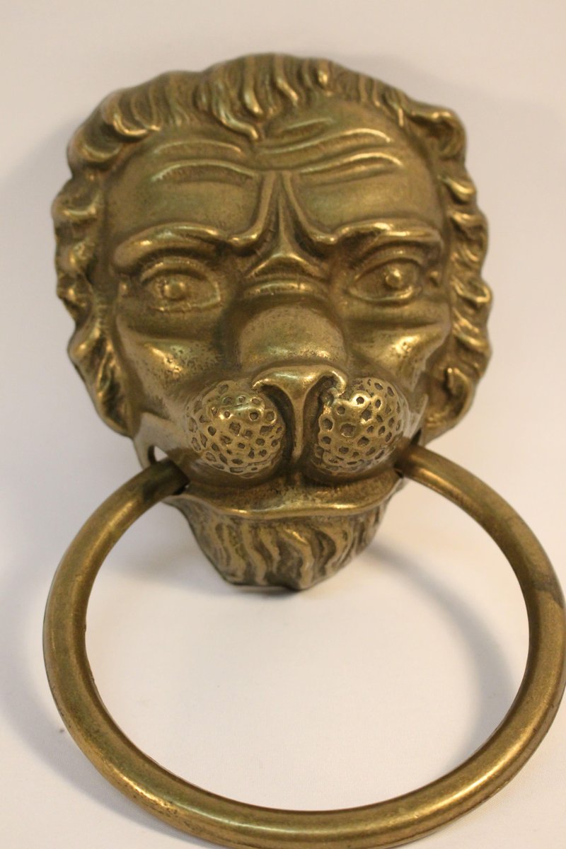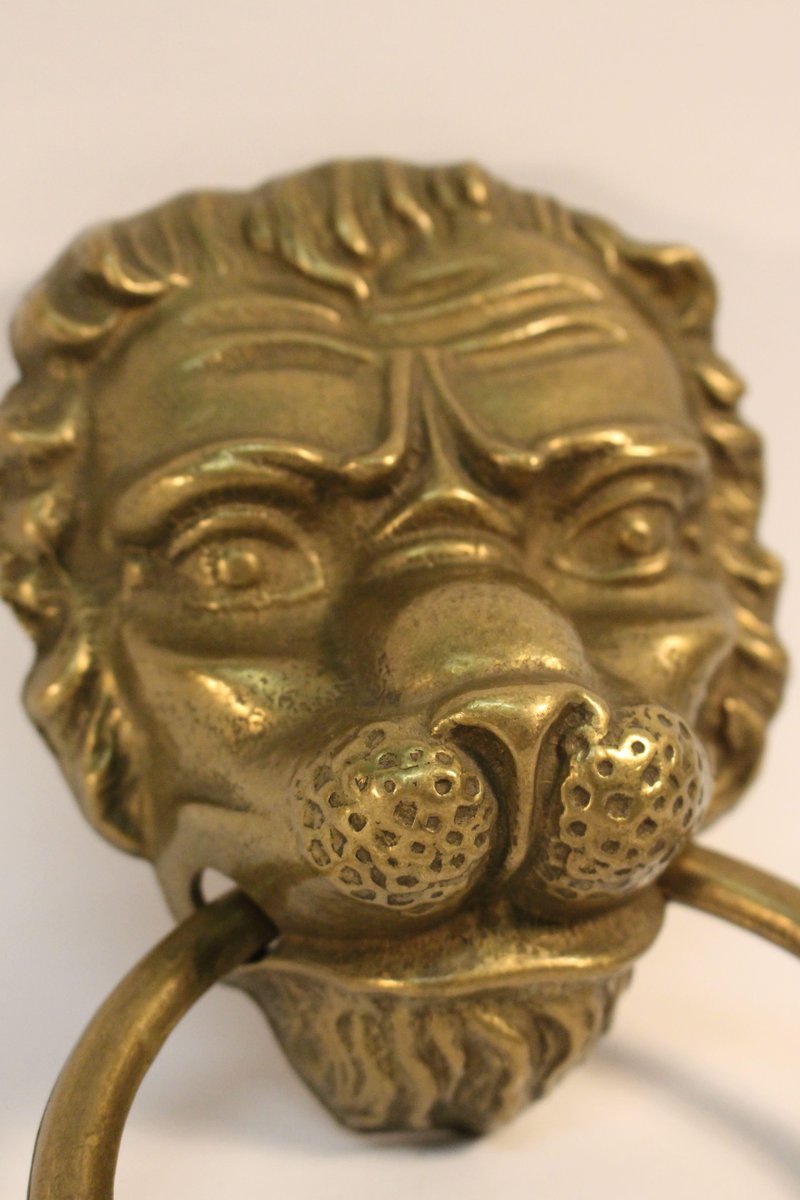 Vintage Door Knocker Lion Head in Brass, 1950s
