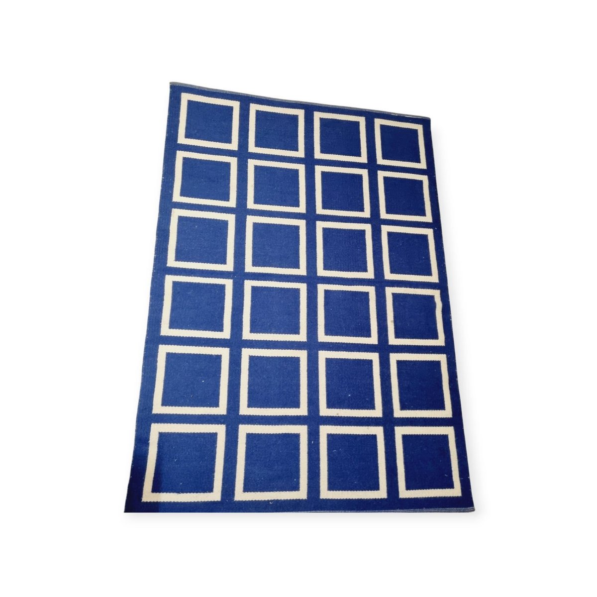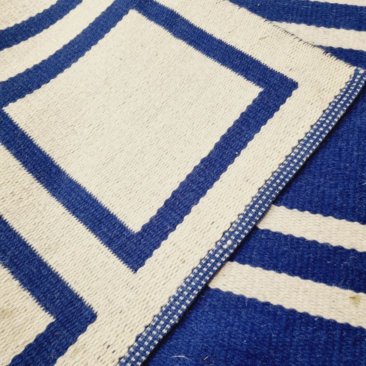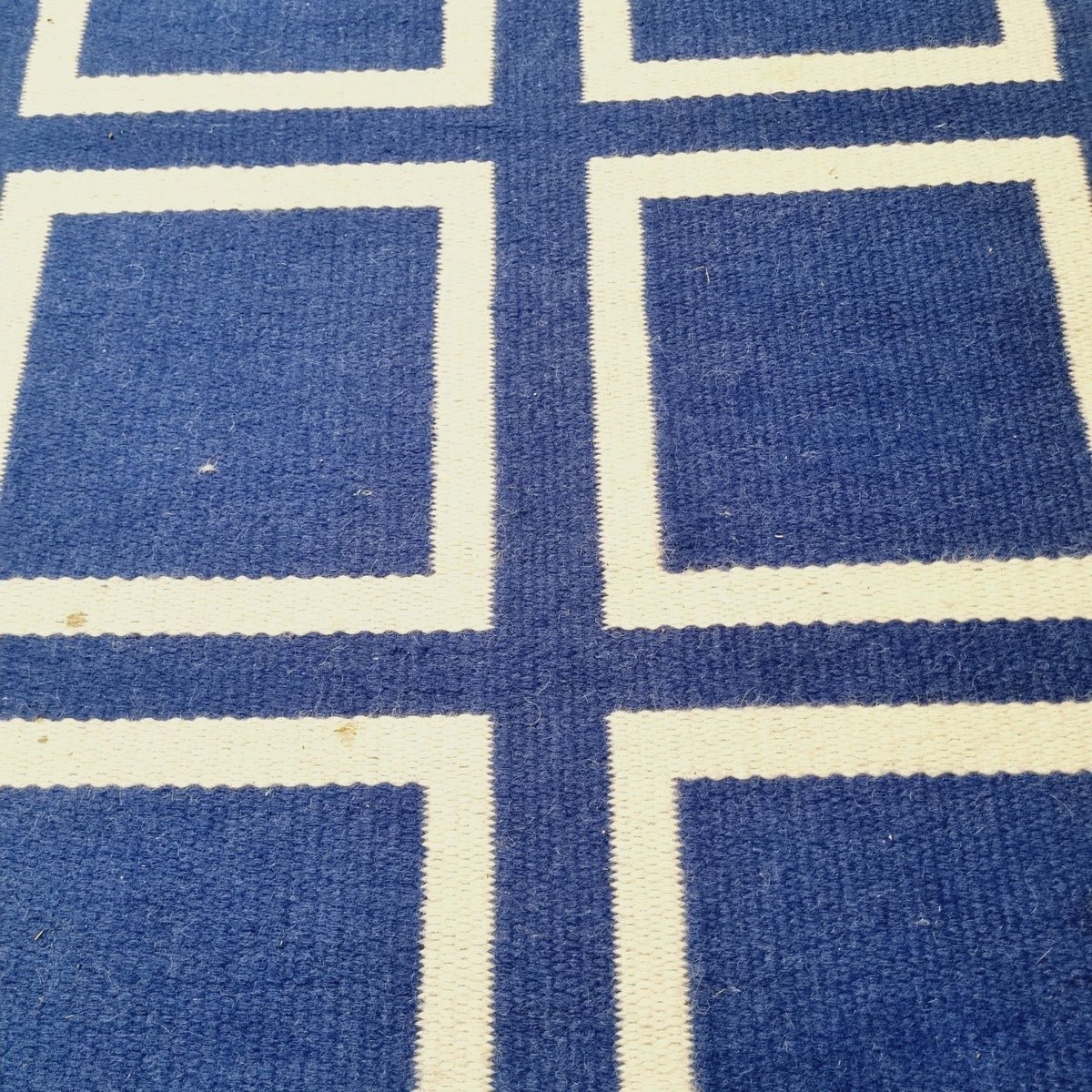 Vintage Double-Weave Plaid Wool Rug, 1970s