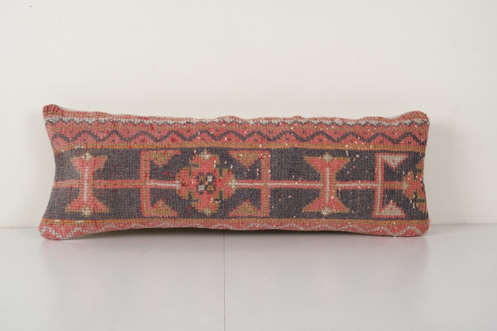 Vintage Ethnic Handmade Muted Red Soft Wool Lumbar Cushion Cover