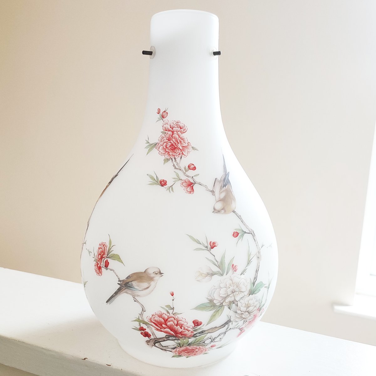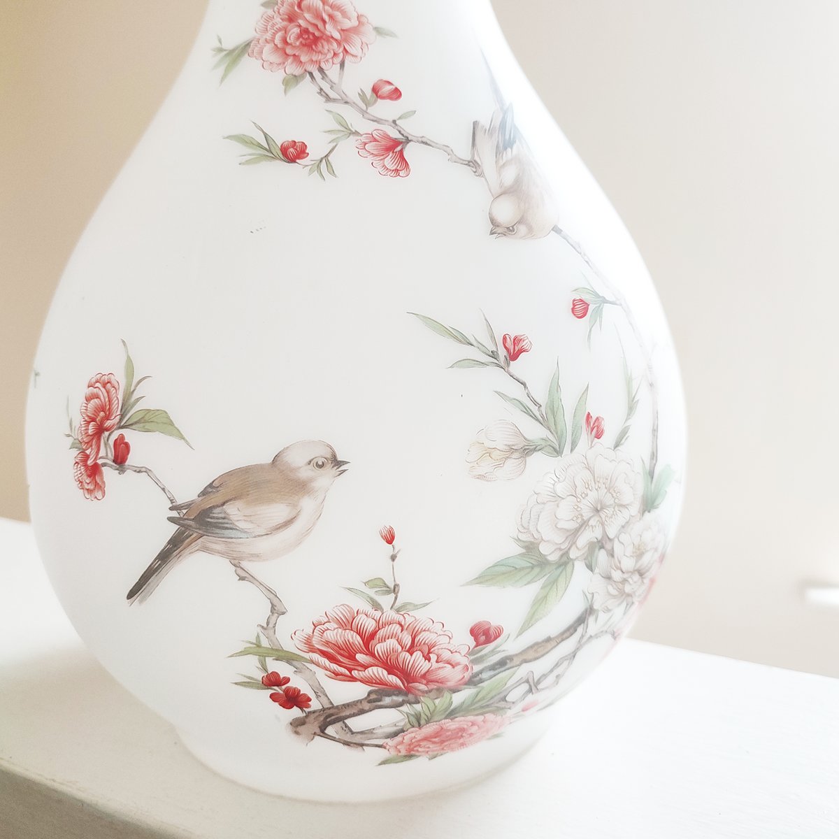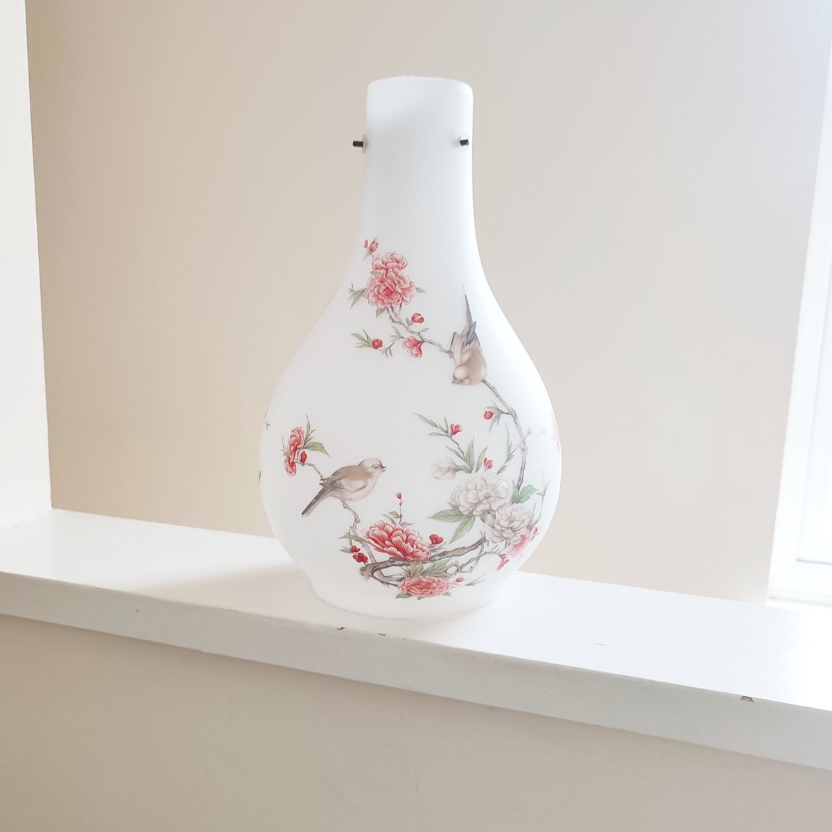 Vintage Famille Rose Opaque Satin Glass Pendant Lightshade, 1920s