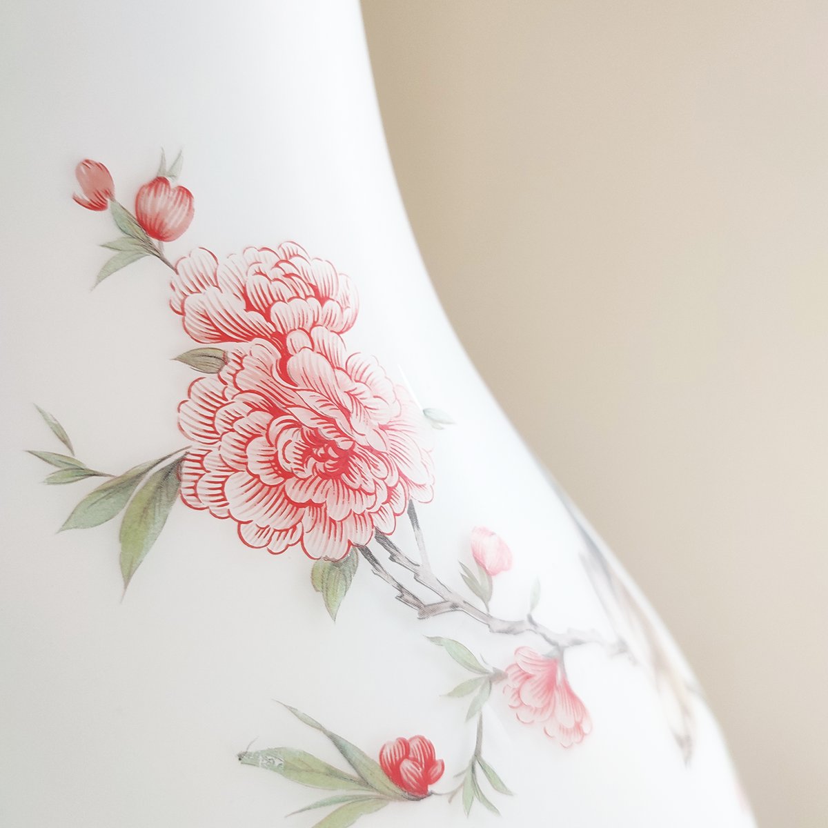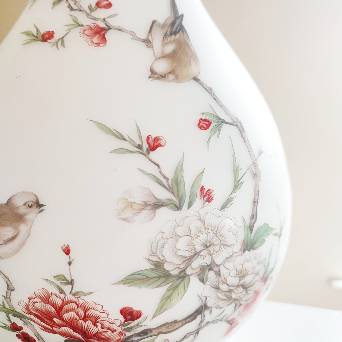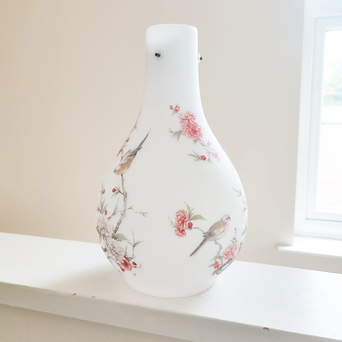 Vintage Famille Rose Opaque Satin Glass Pendant Lightshade, 1920s