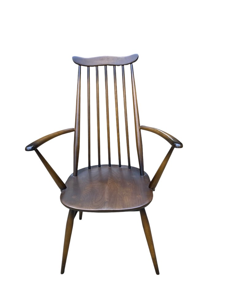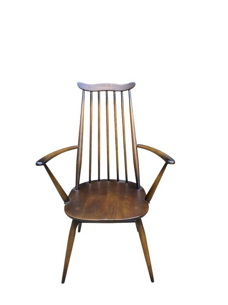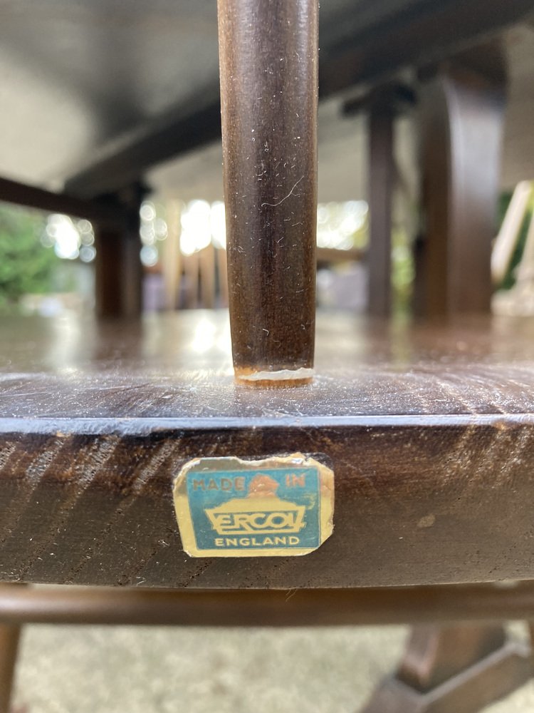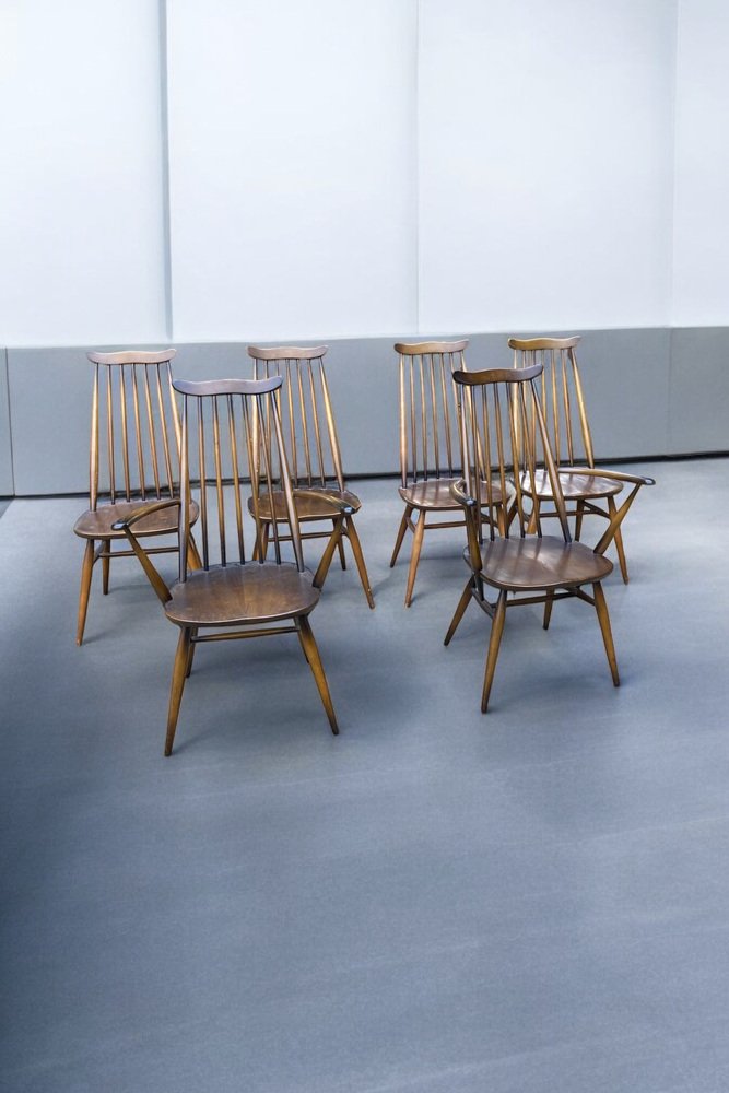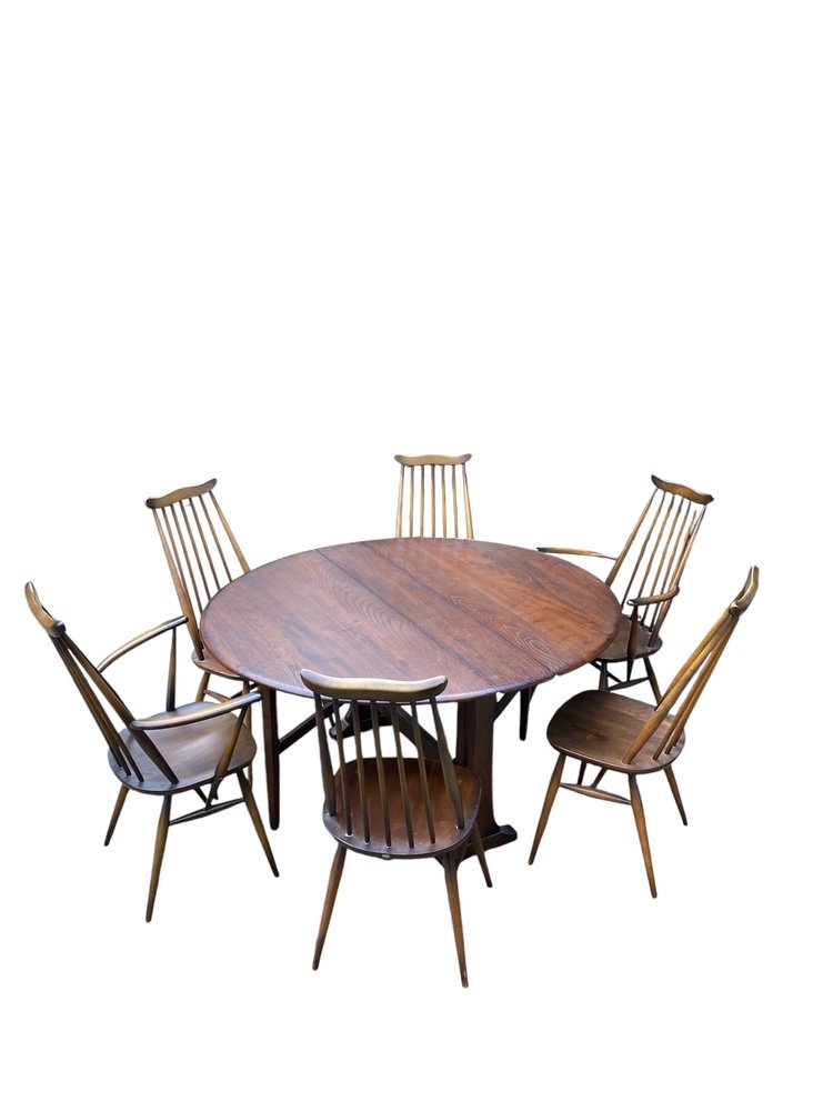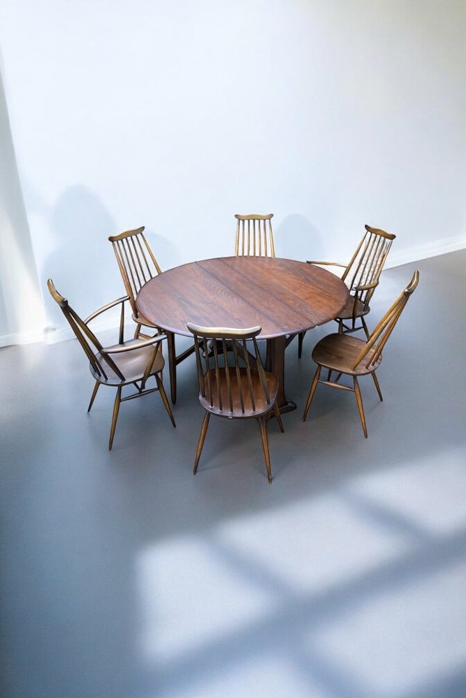 Vintage Folding Table and Stick Windsor Back Chairs with Two Armchairs from Ercol, 1960s, Set of 6