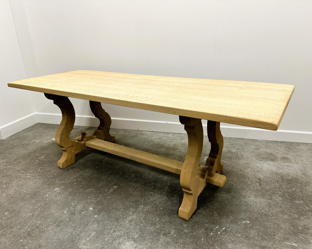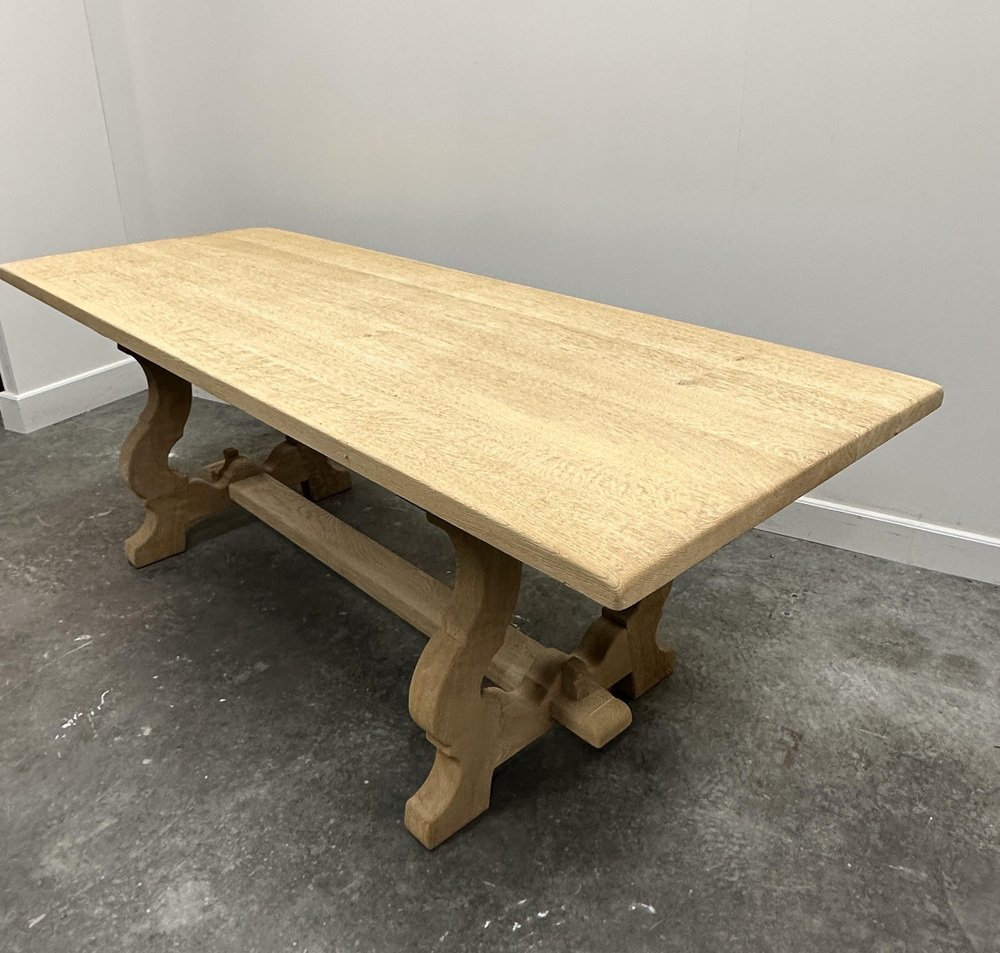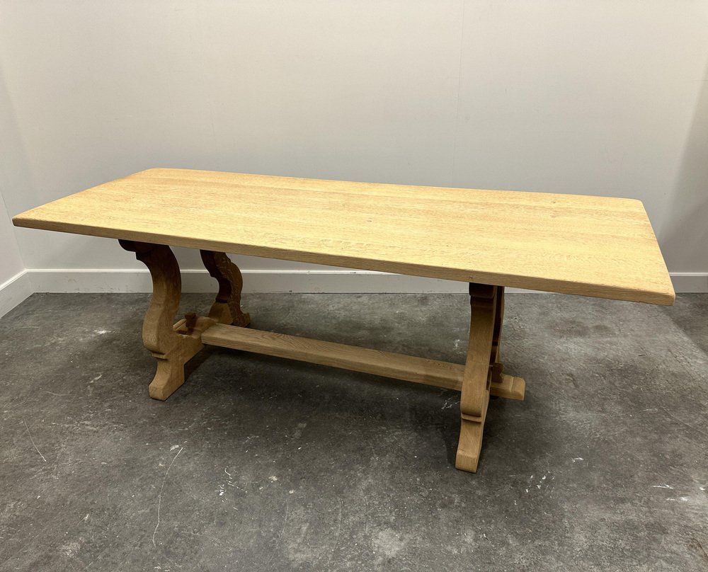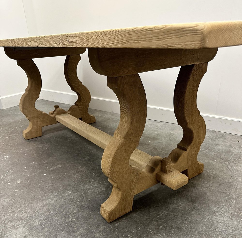 Vintage French Dining Table in Sanded Oak, 1970s