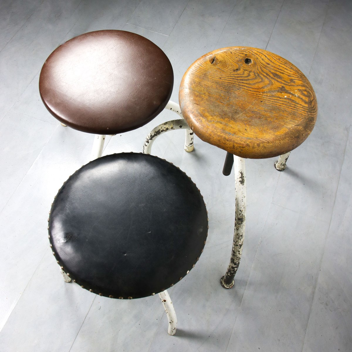 Vintage Industrial Adjustable Swivel Stools, Set of 3
