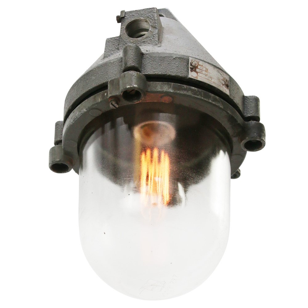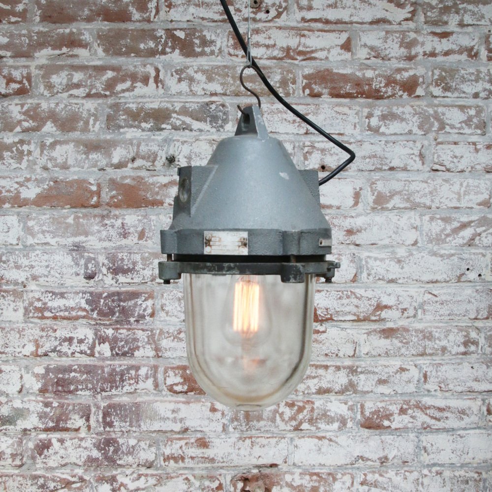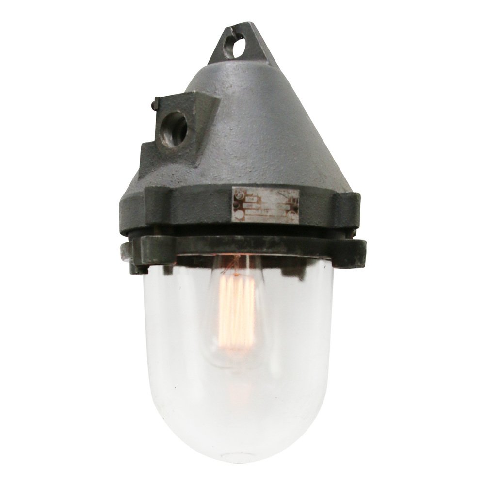 Vintage Industrial Clear Glass & Grey Pendant Light