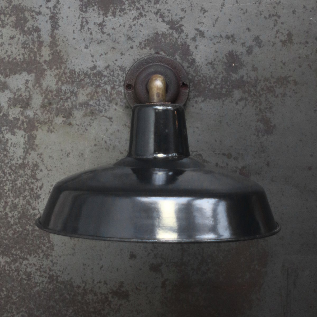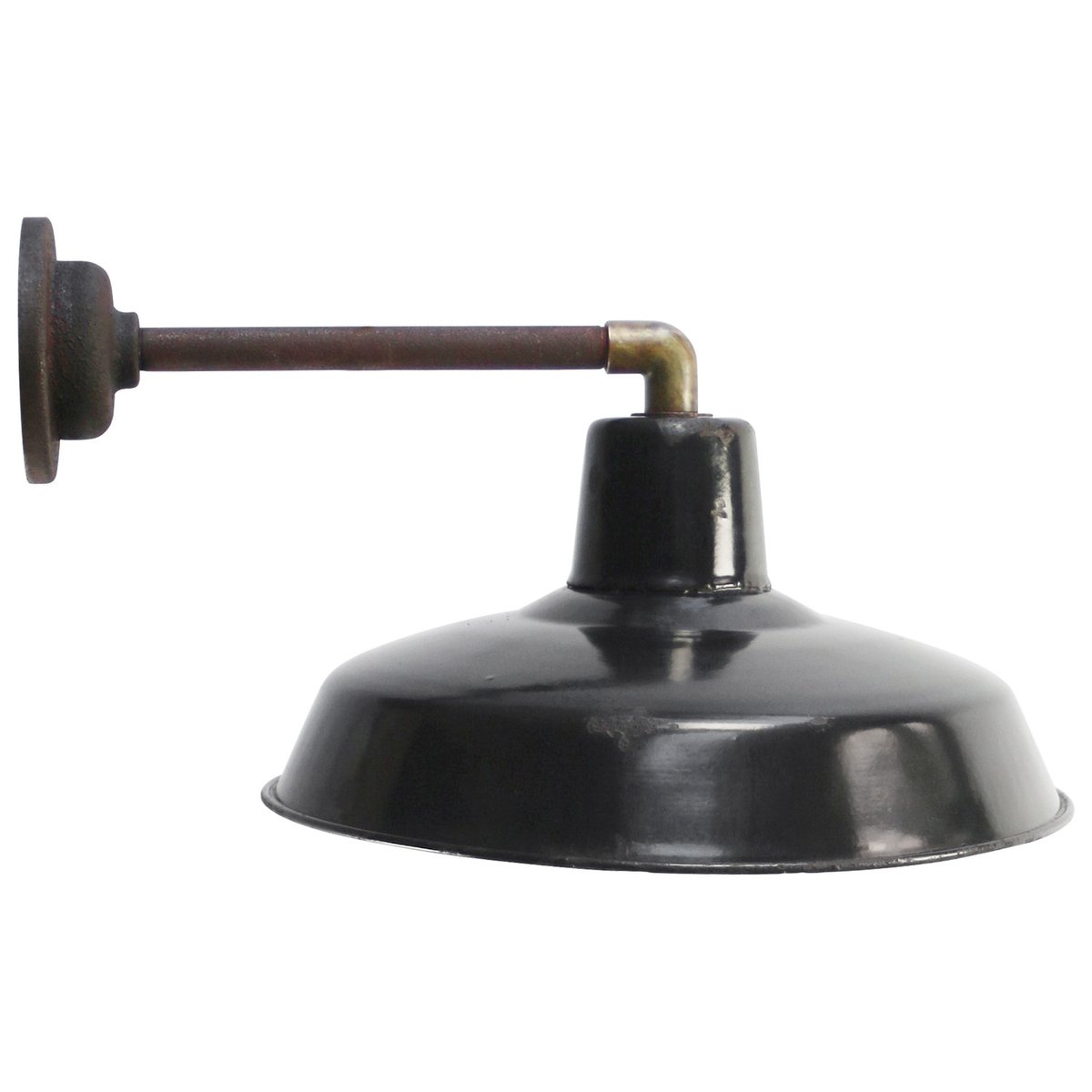 Vintage Industrial French Wall Light in Black Enamel and Cast Iron