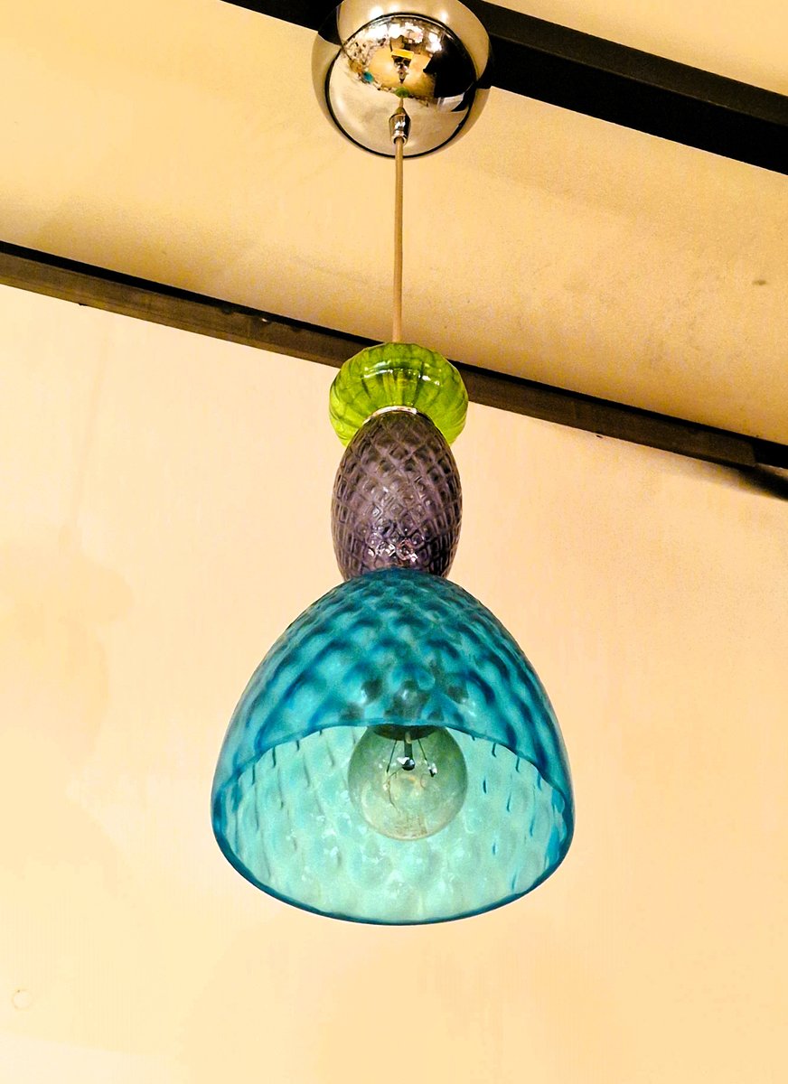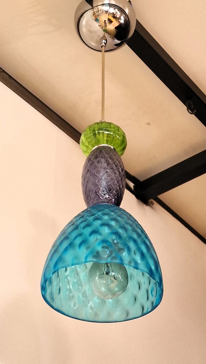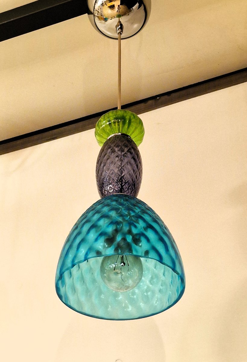 Vintage Italian Hanging Lamp with Hand-Blown Murano Glass, 1980s
