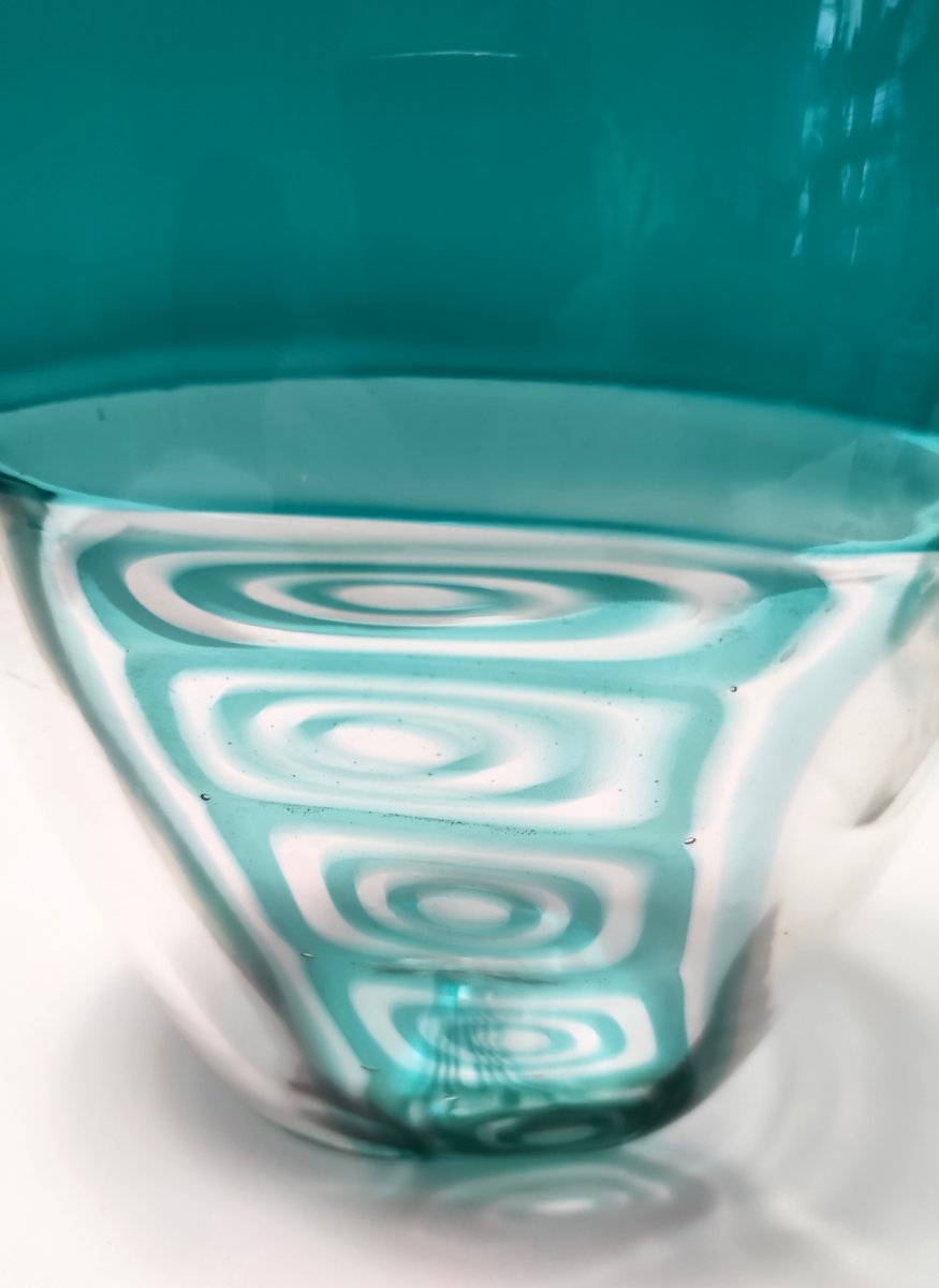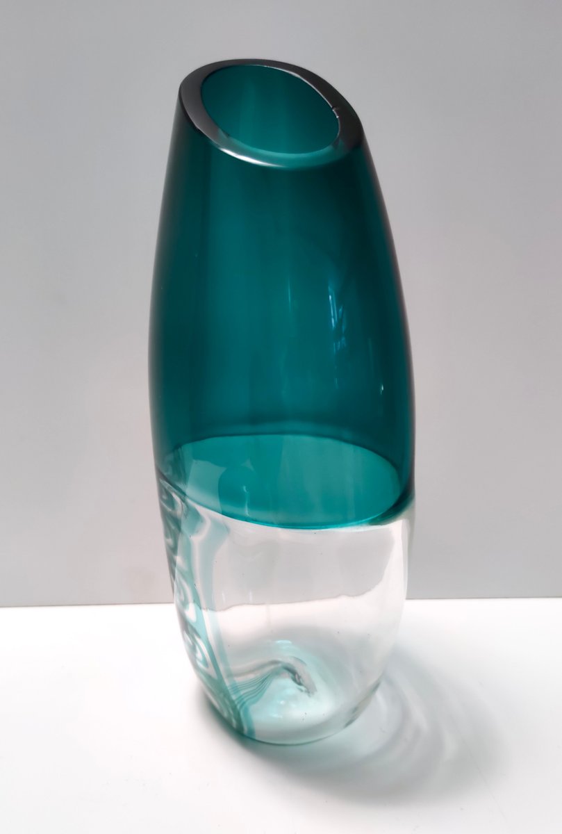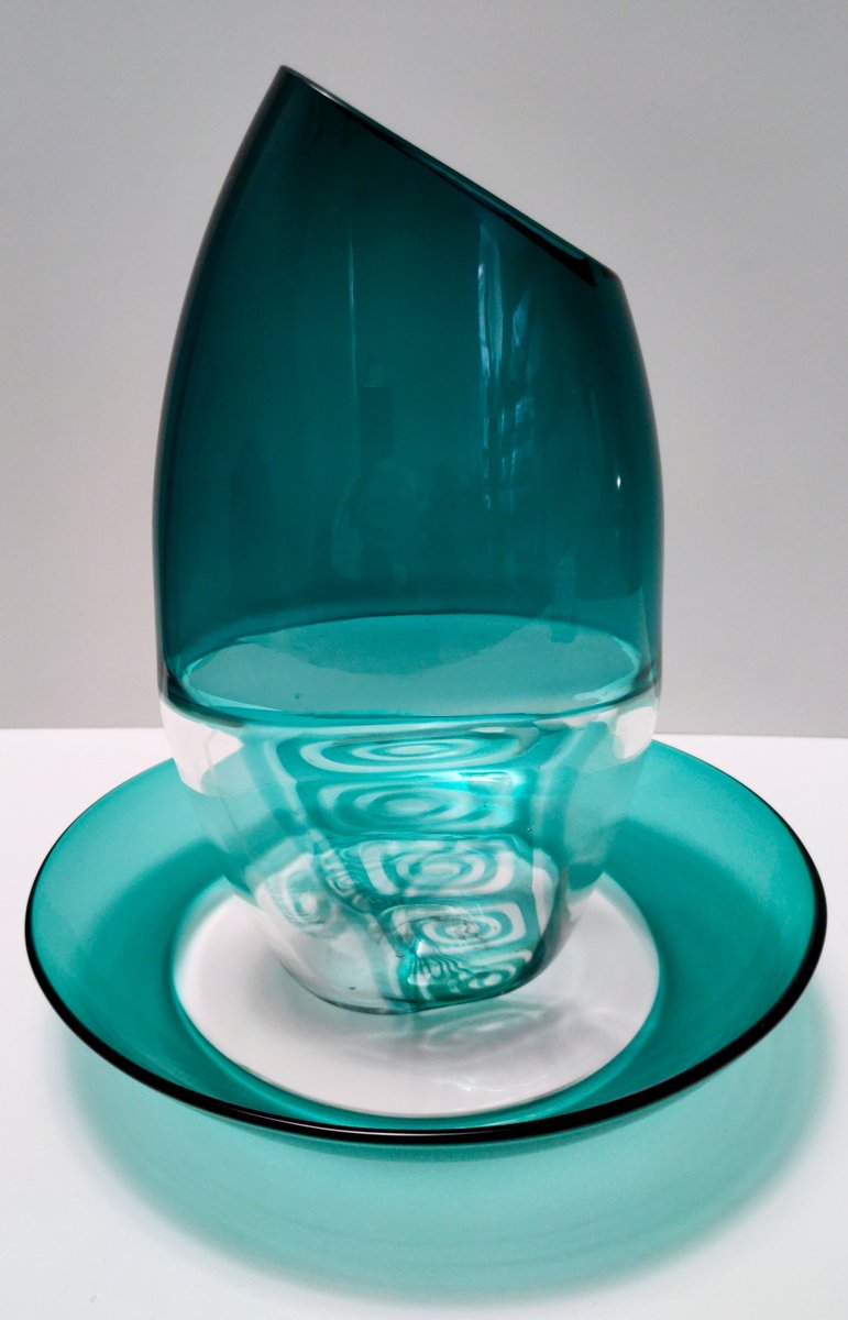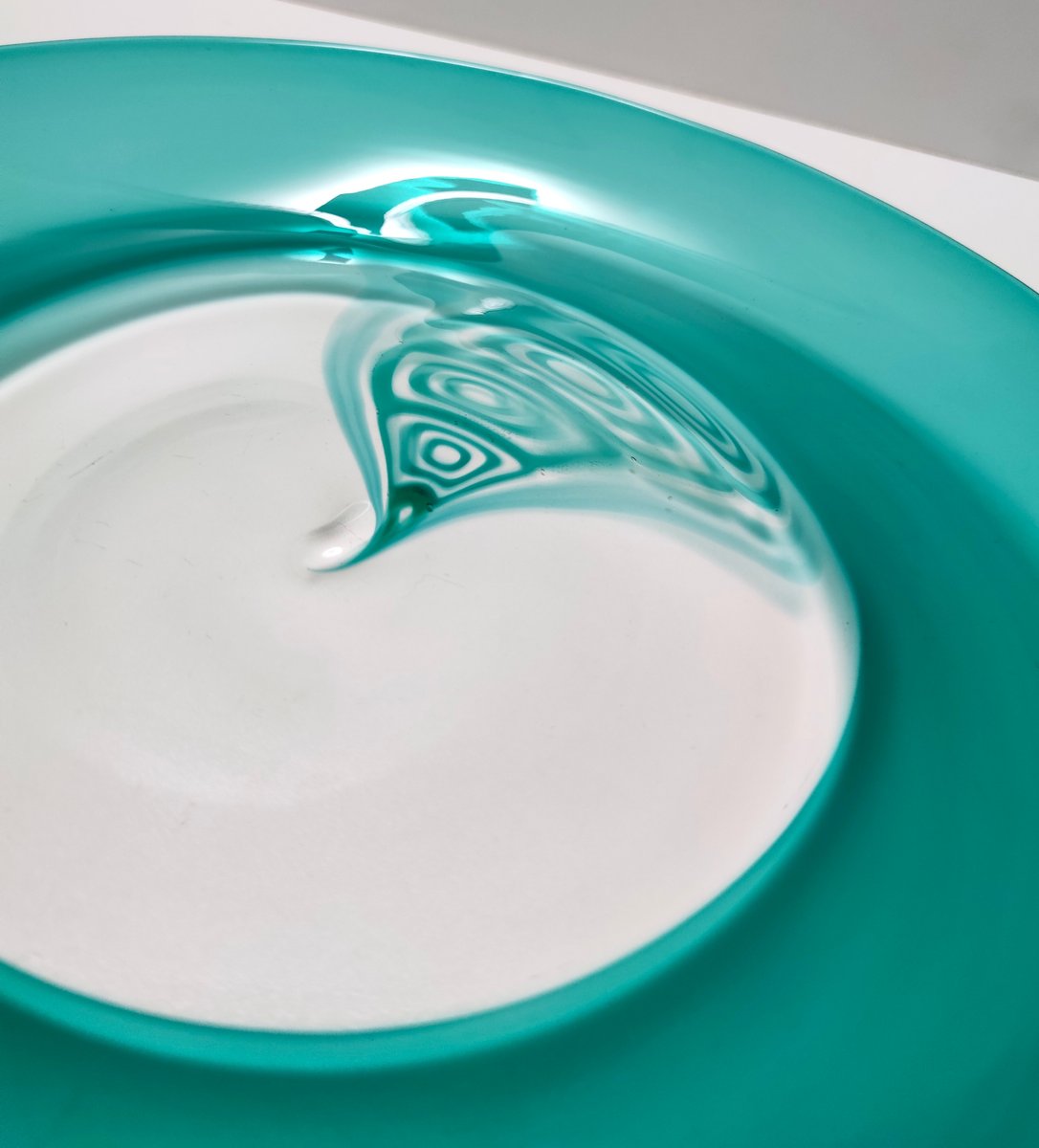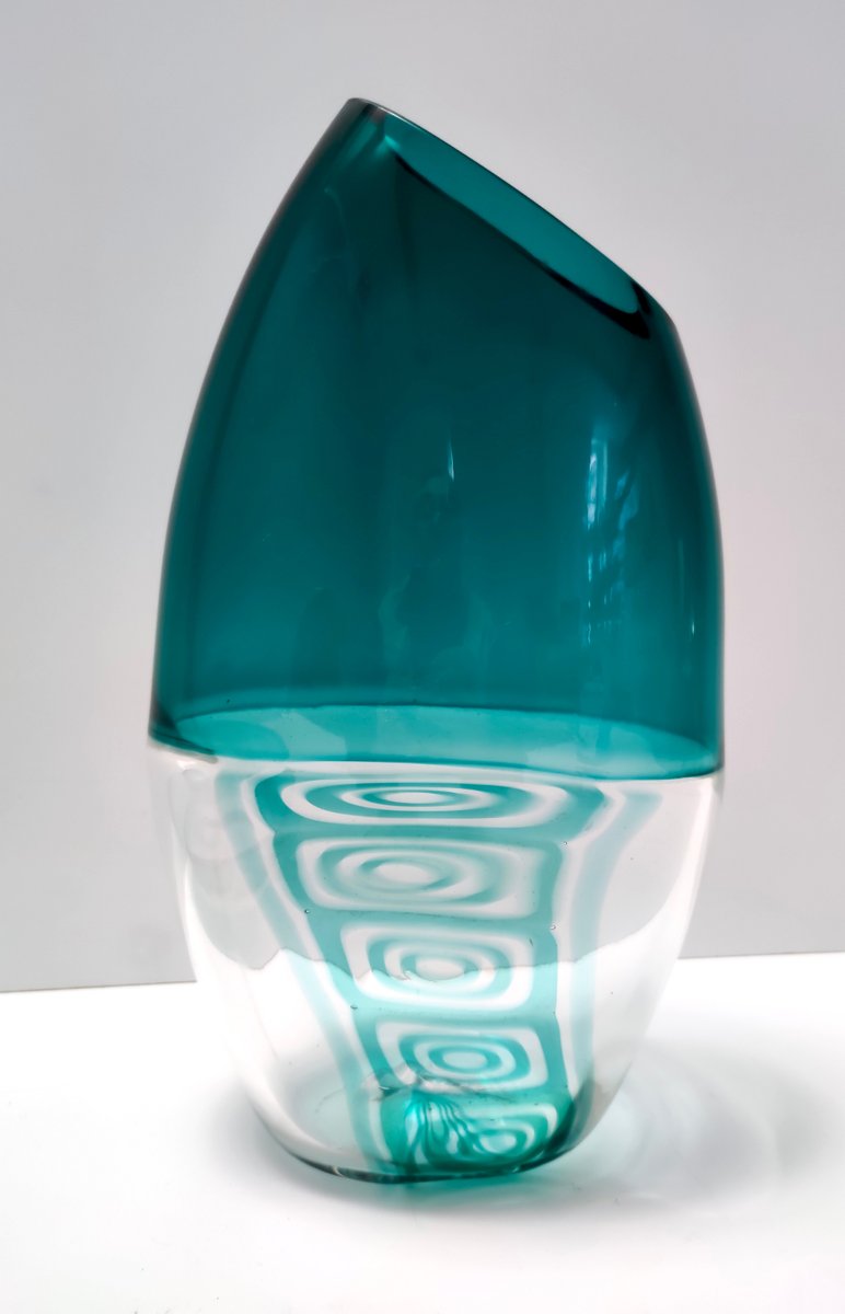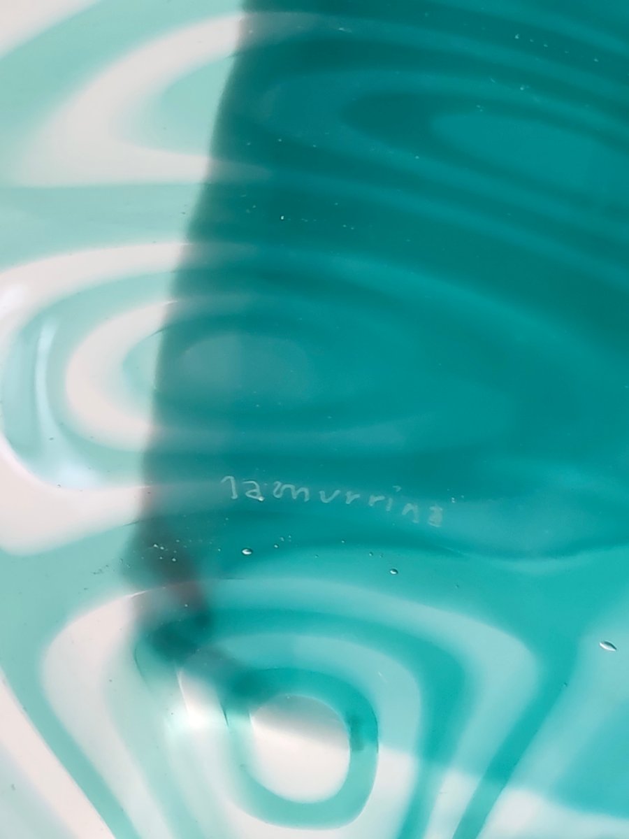Vintage Italian Teal Murano Glass Plate and Vase by La Murrina, 1970s, Set of 2