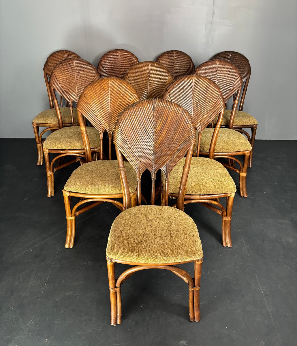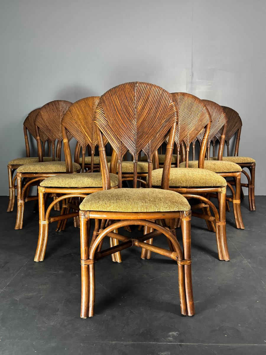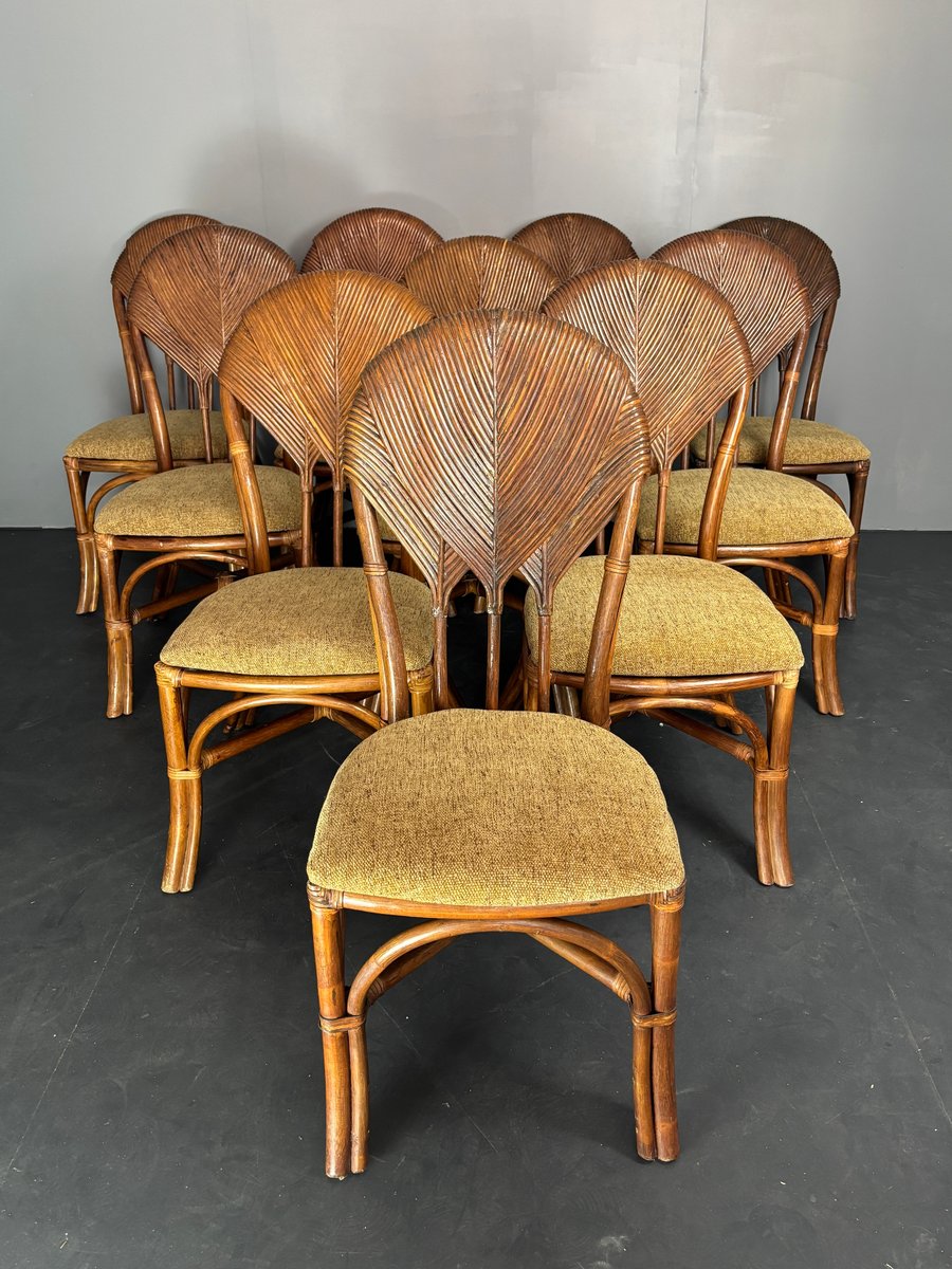 Vintage Pencil Reed and Rattan Bamboo Dining Chairs in the style of Vivai Del Sud, 1960s, Set of 10
