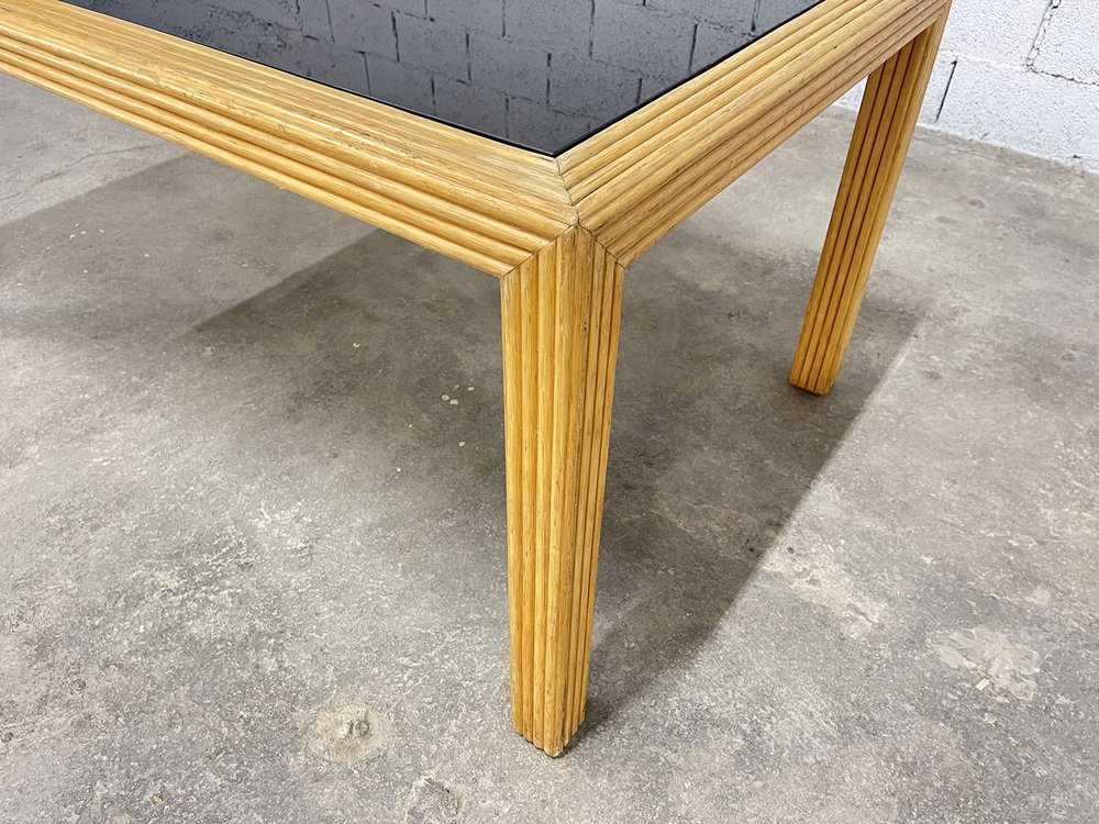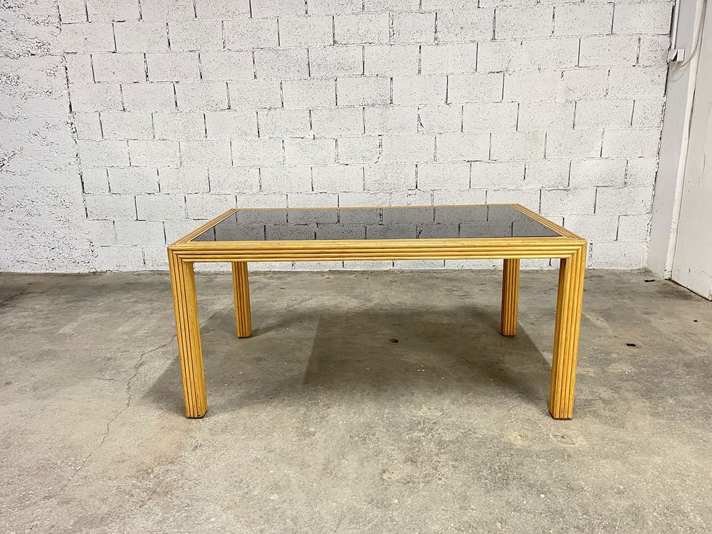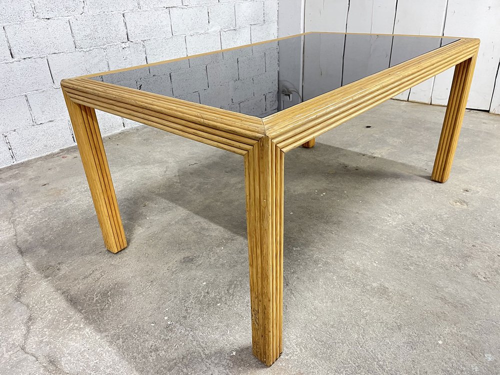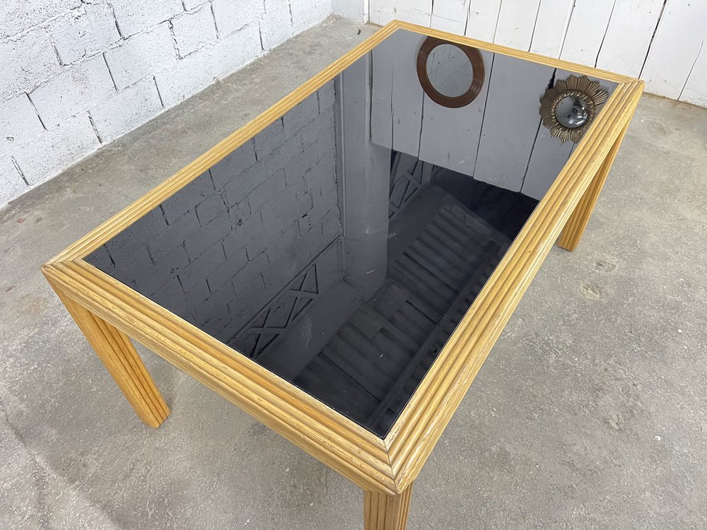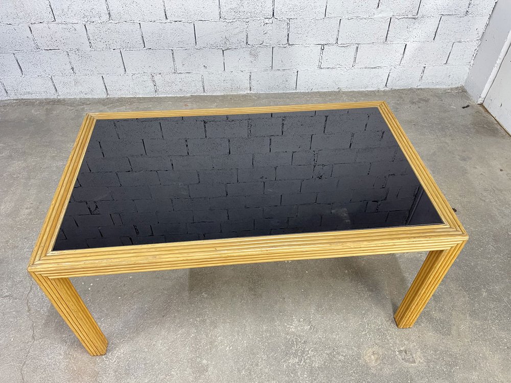 Vintage Rattan and Glass Table, 1970s