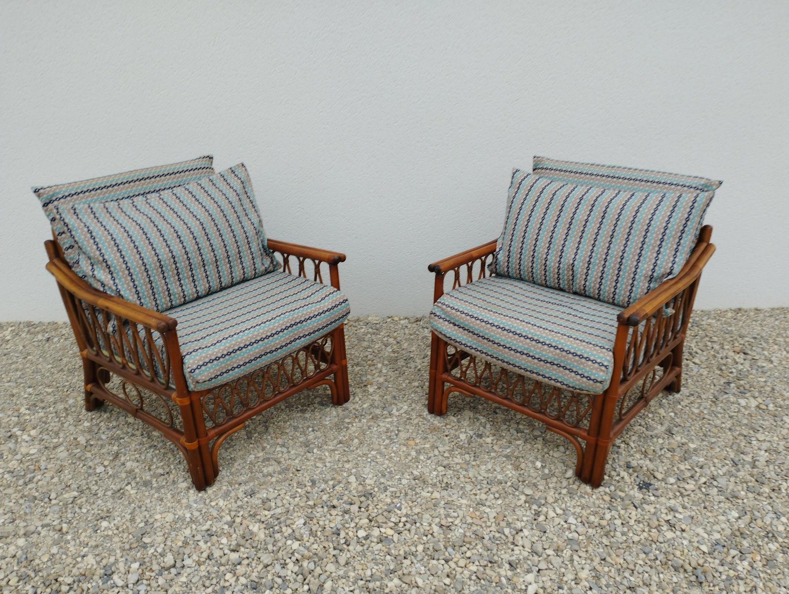 Vintage Rattan Armchairs with Quilted Seats, Set of 2