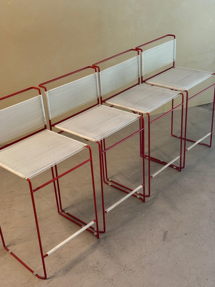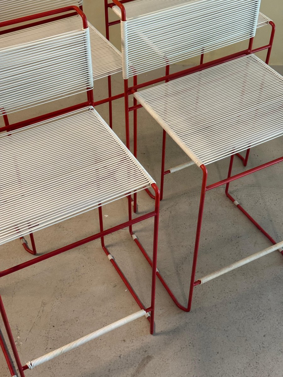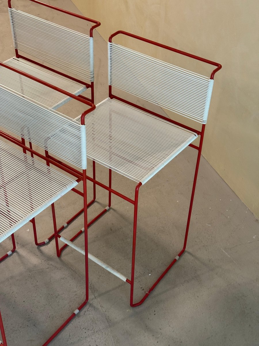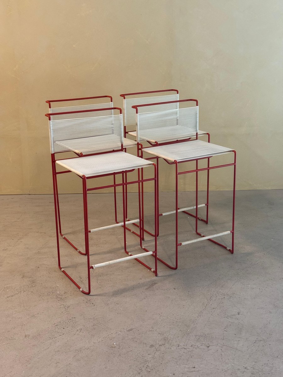 Vintage Red Bar Stools by Giandomenico Belotti for Fly Line, 1970s, Set of 4