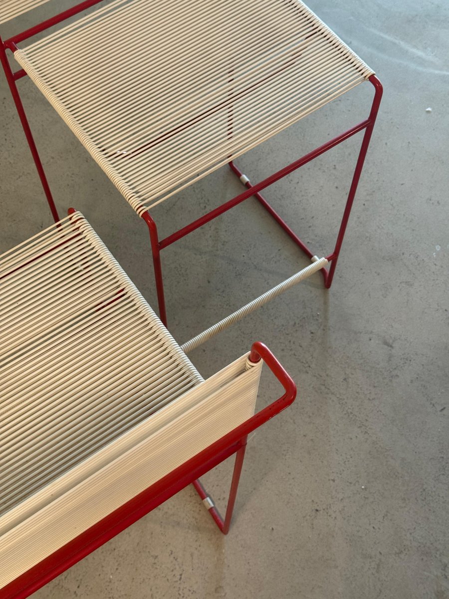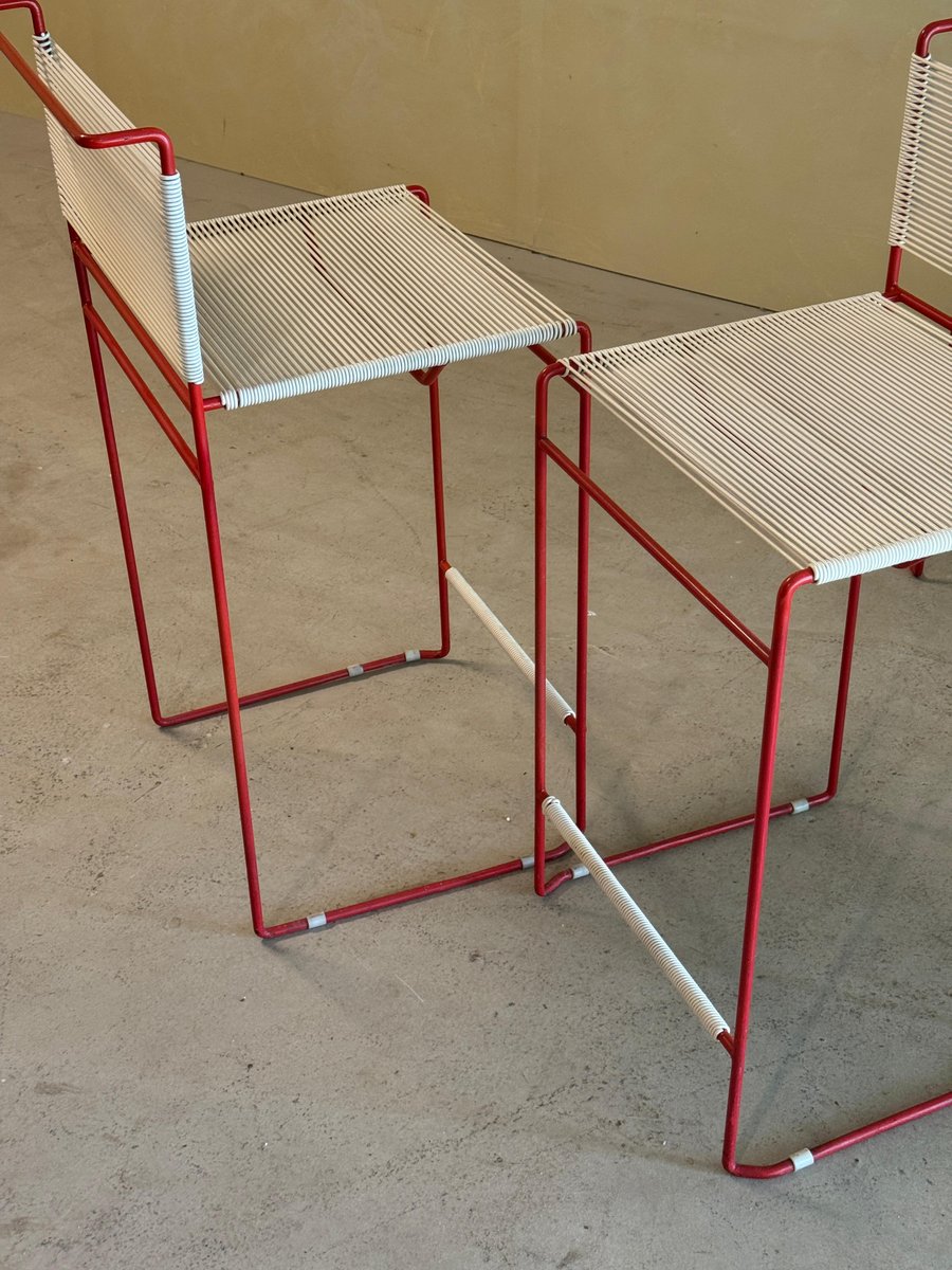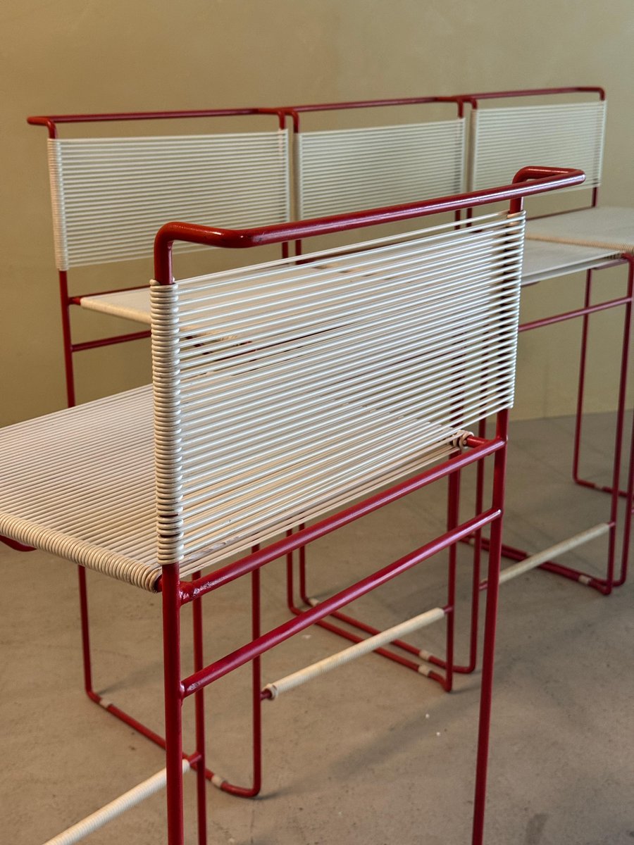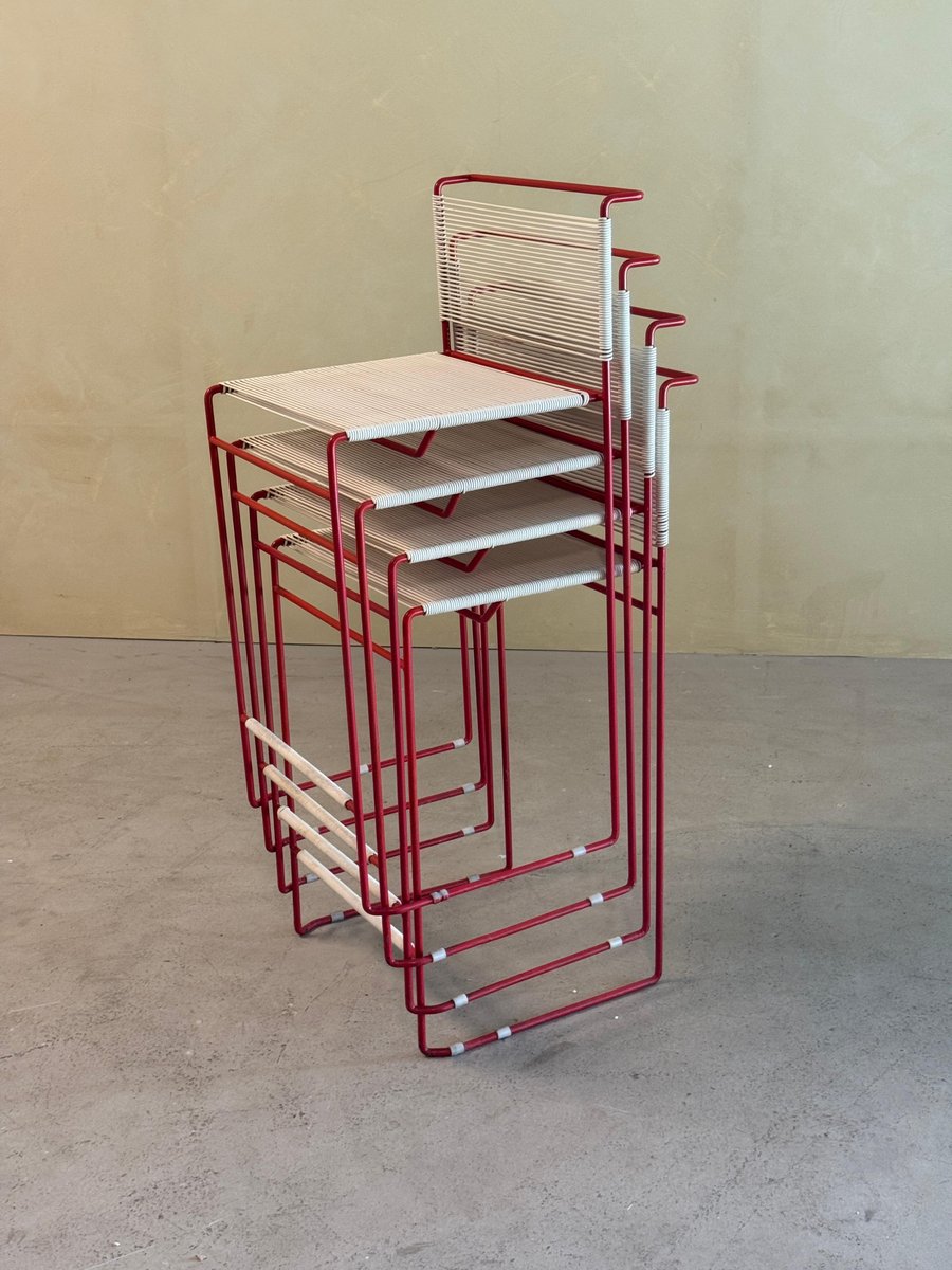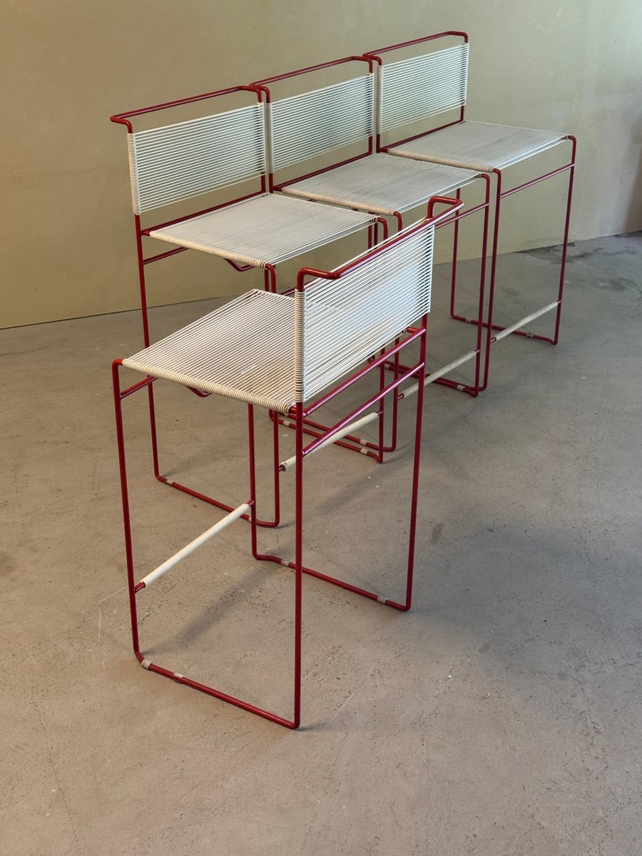 Vintage Red Bar Stools by Giandomenico Belotti for Fly Line, 1970s, Set of 4