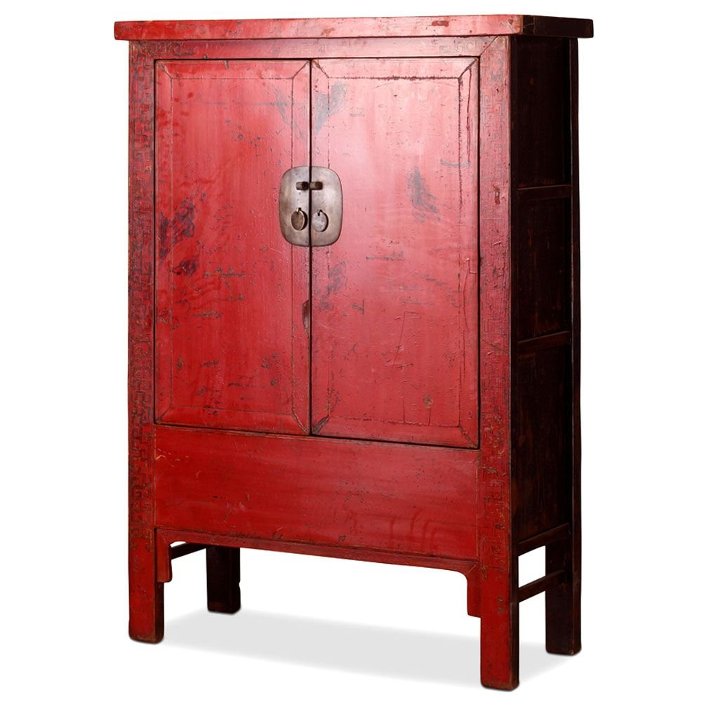 Vintage Red Lacquered Armoire