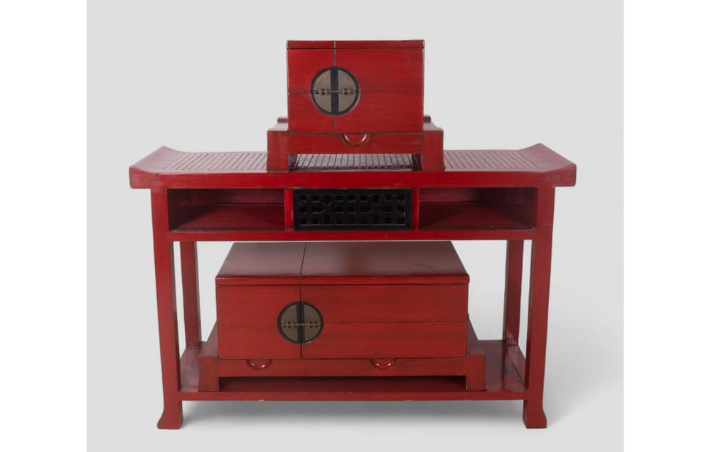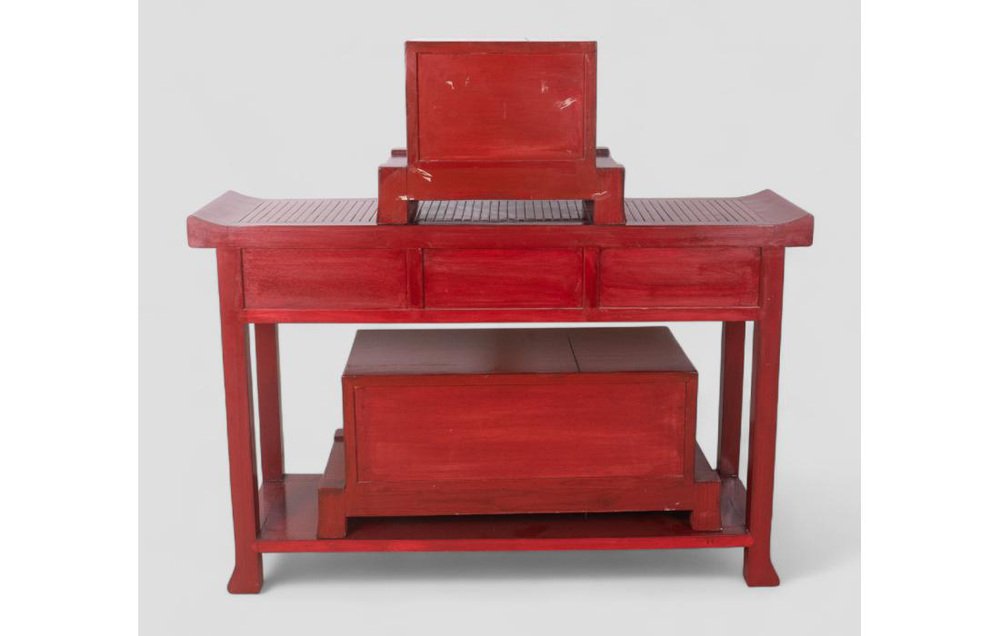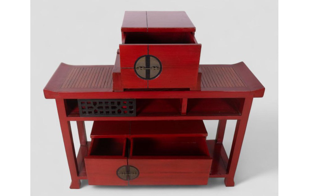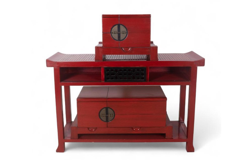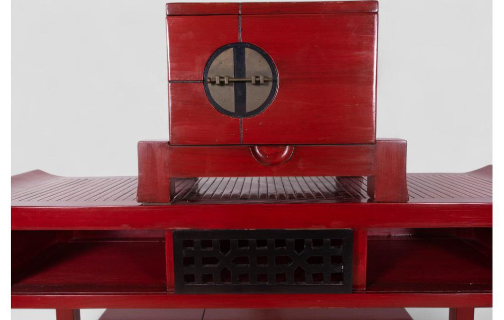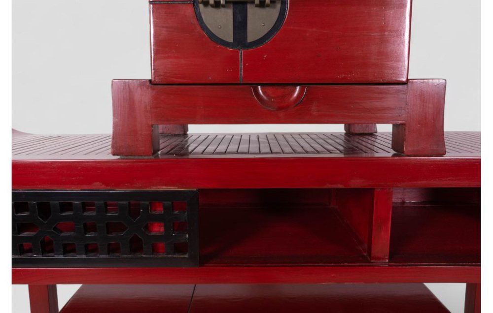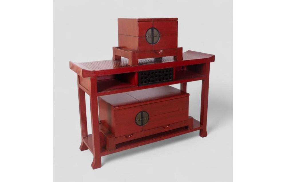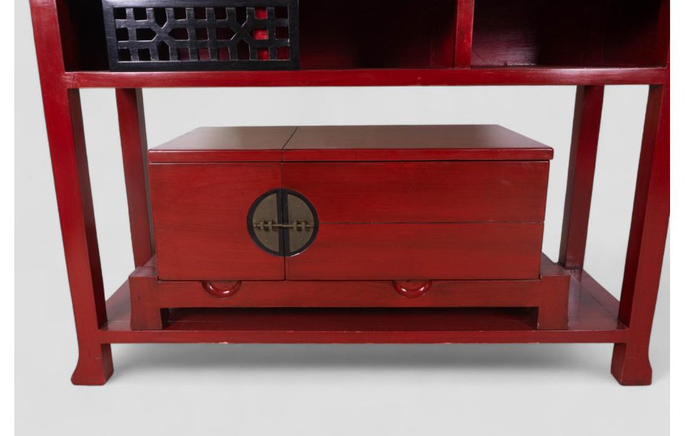 Vintage Red Lacquered Wood Sideboard