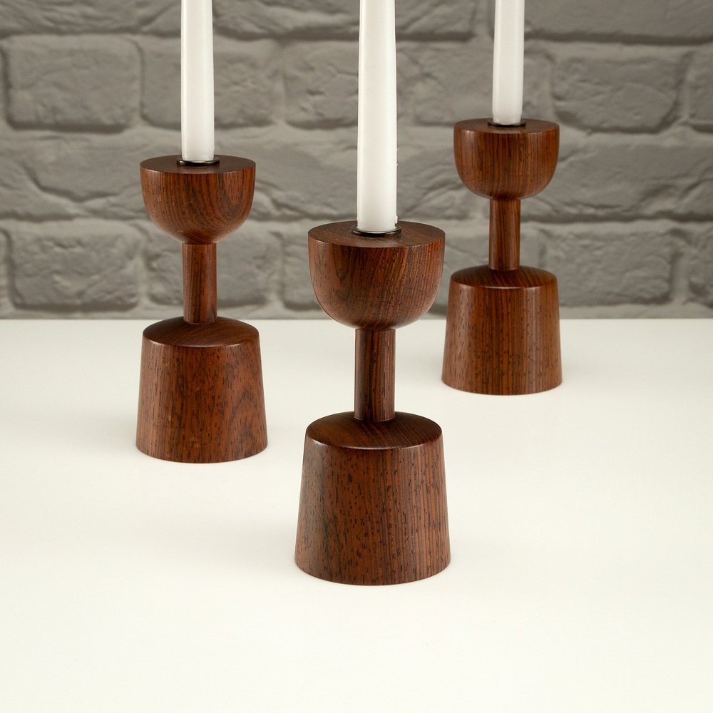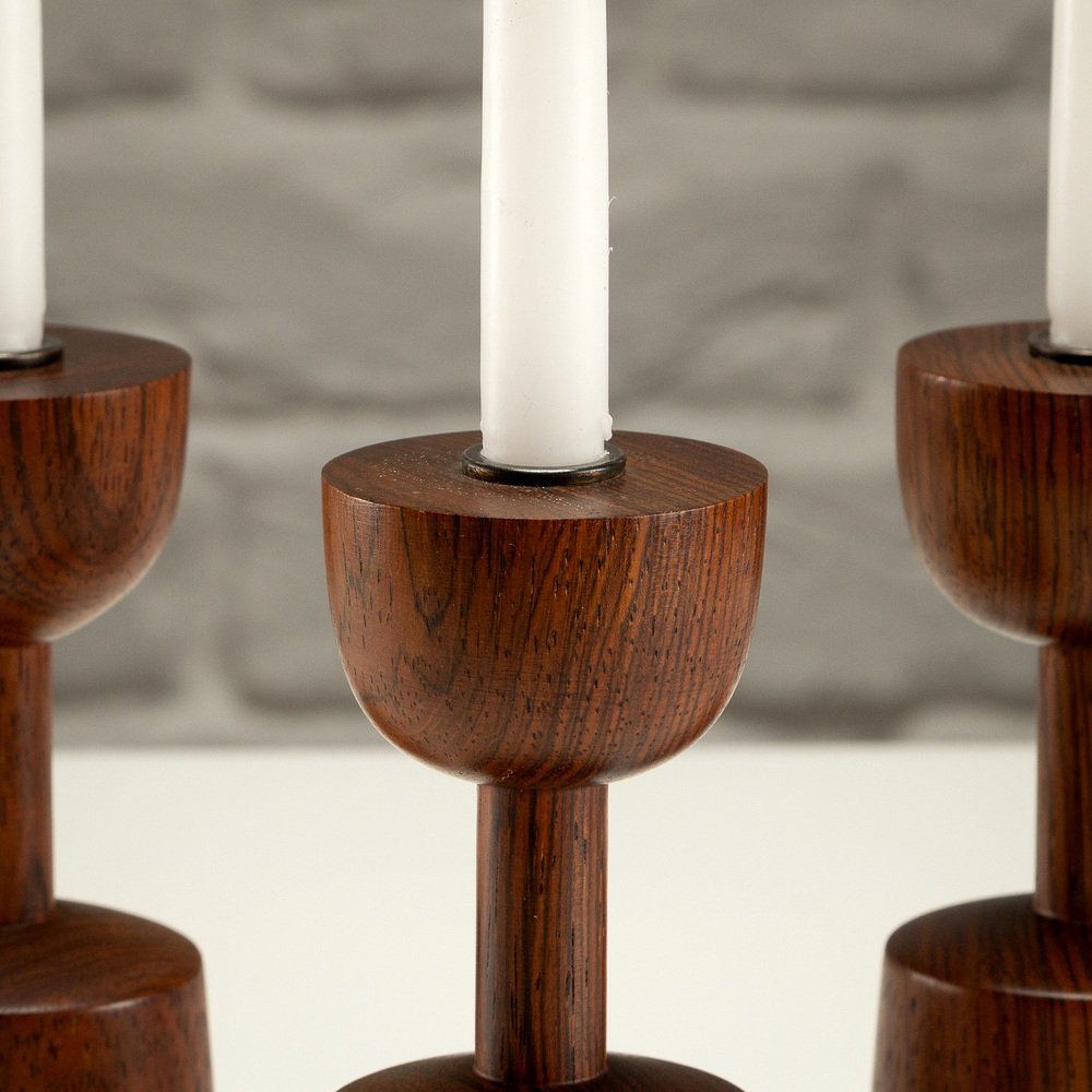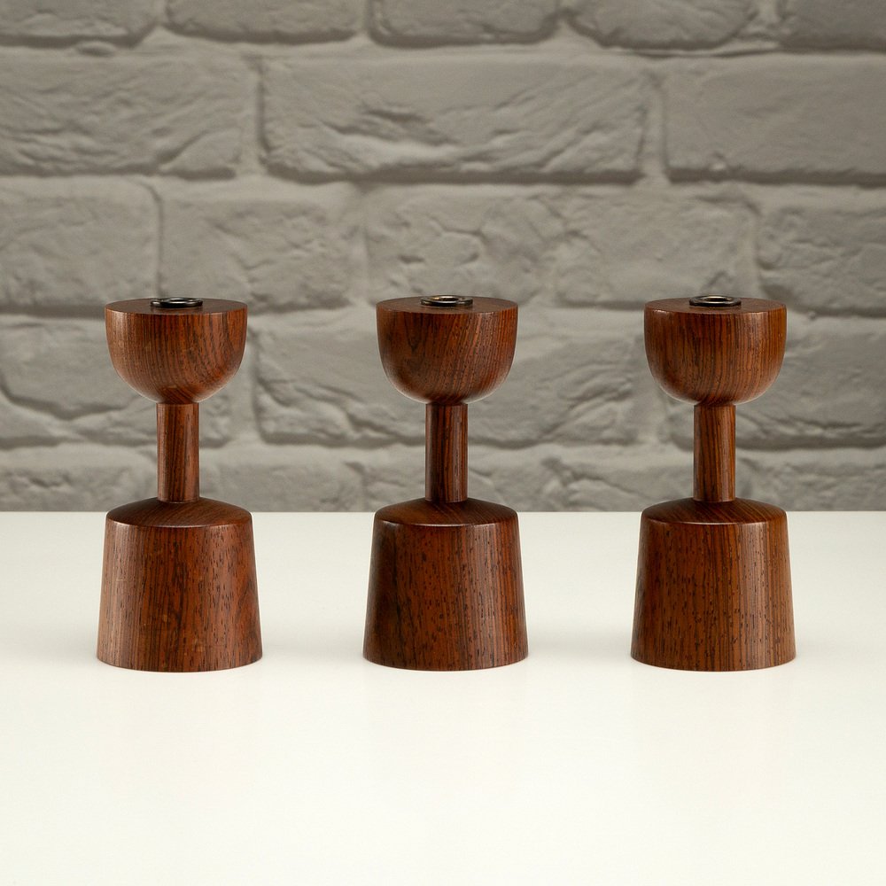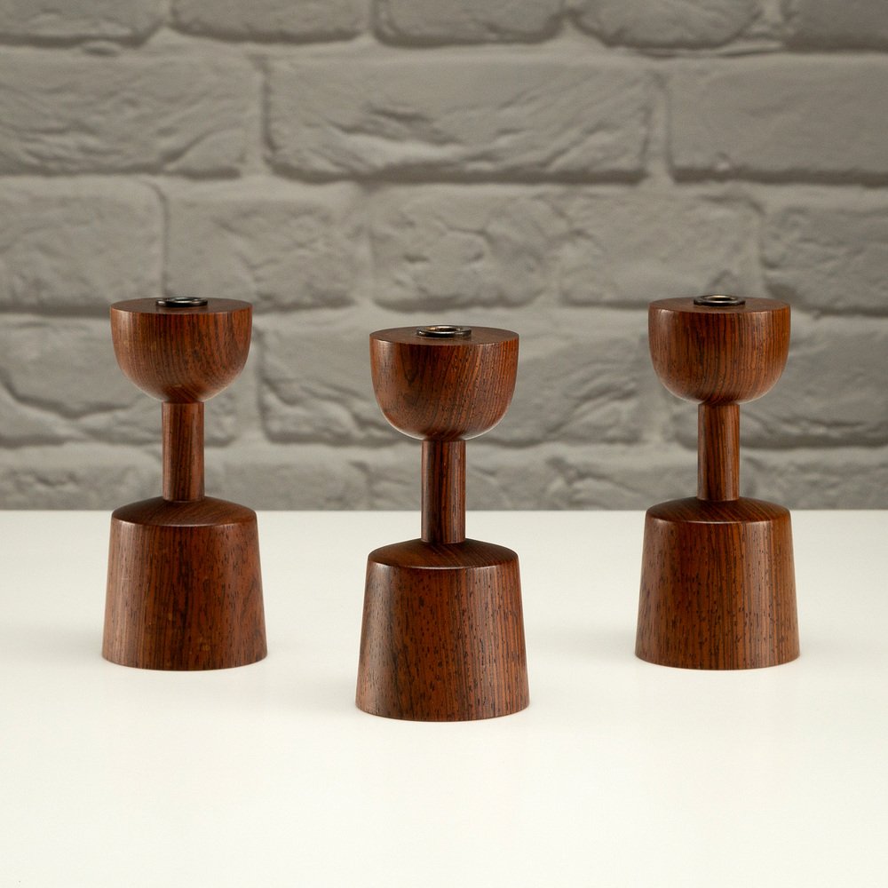 Vintage Rosewood Candlesticks by Laurids Lønborg, 1960s, Set of 3