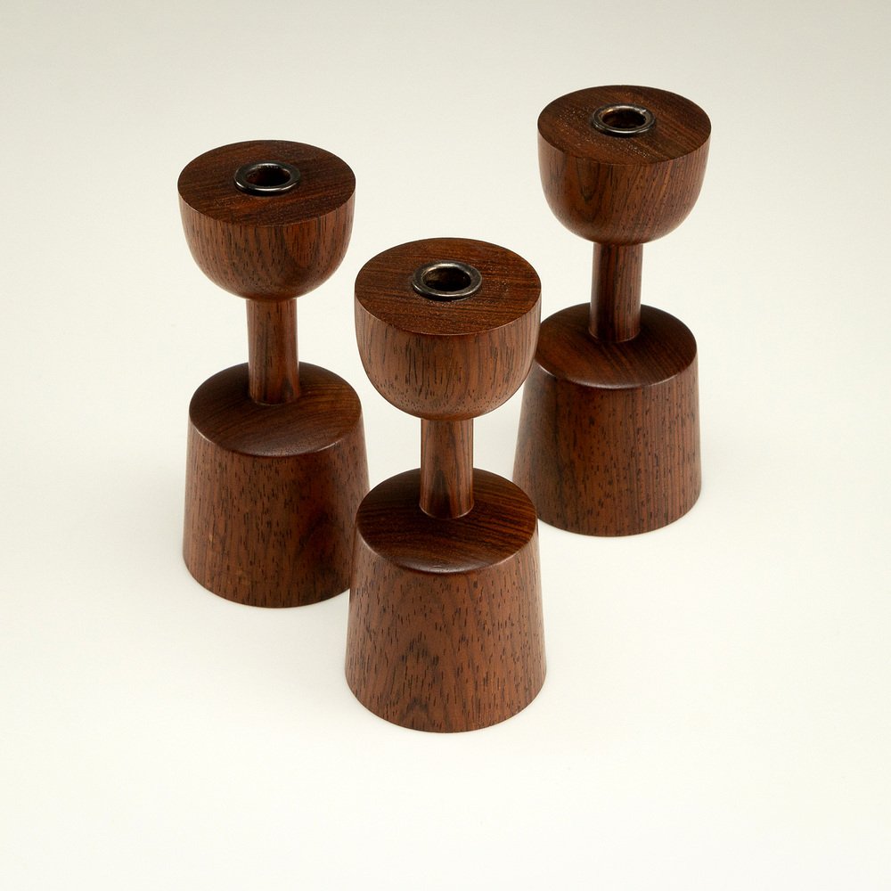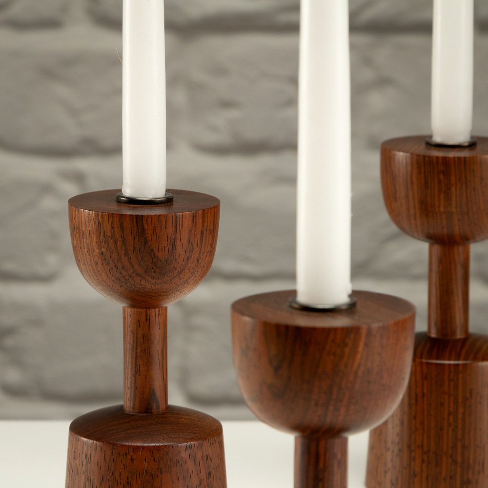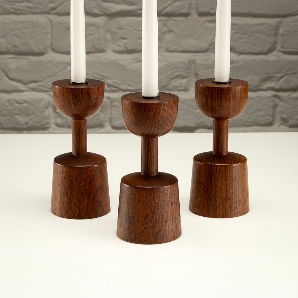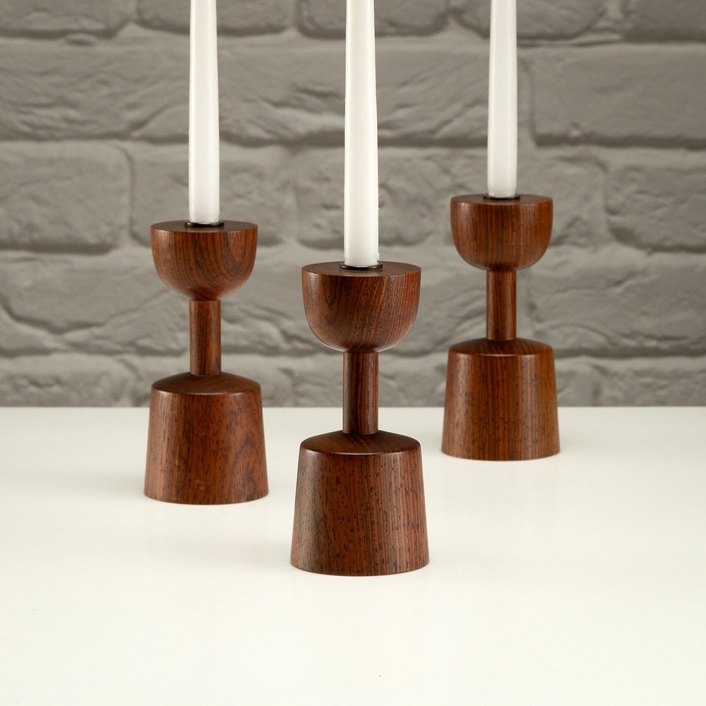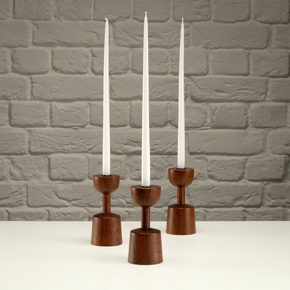 Vintage Rosewood Candlesticks by Laurids Lønborg, 1960s, Set of 3