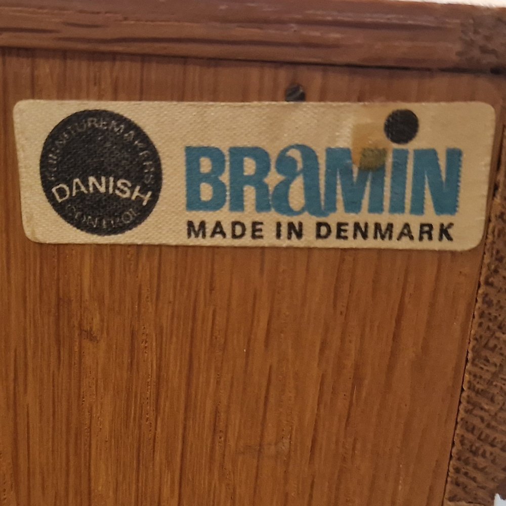 Originally known as N.A. Jørgensen, Danish furniture manufacturer Bramin was founded in Bramming, a region on the west coast of the Jutland peninsula. Throughout the 1950s, '60s, and '70s, the company produced seating, tables, and casegoods in a style representative of the Danish mid-century modern era.