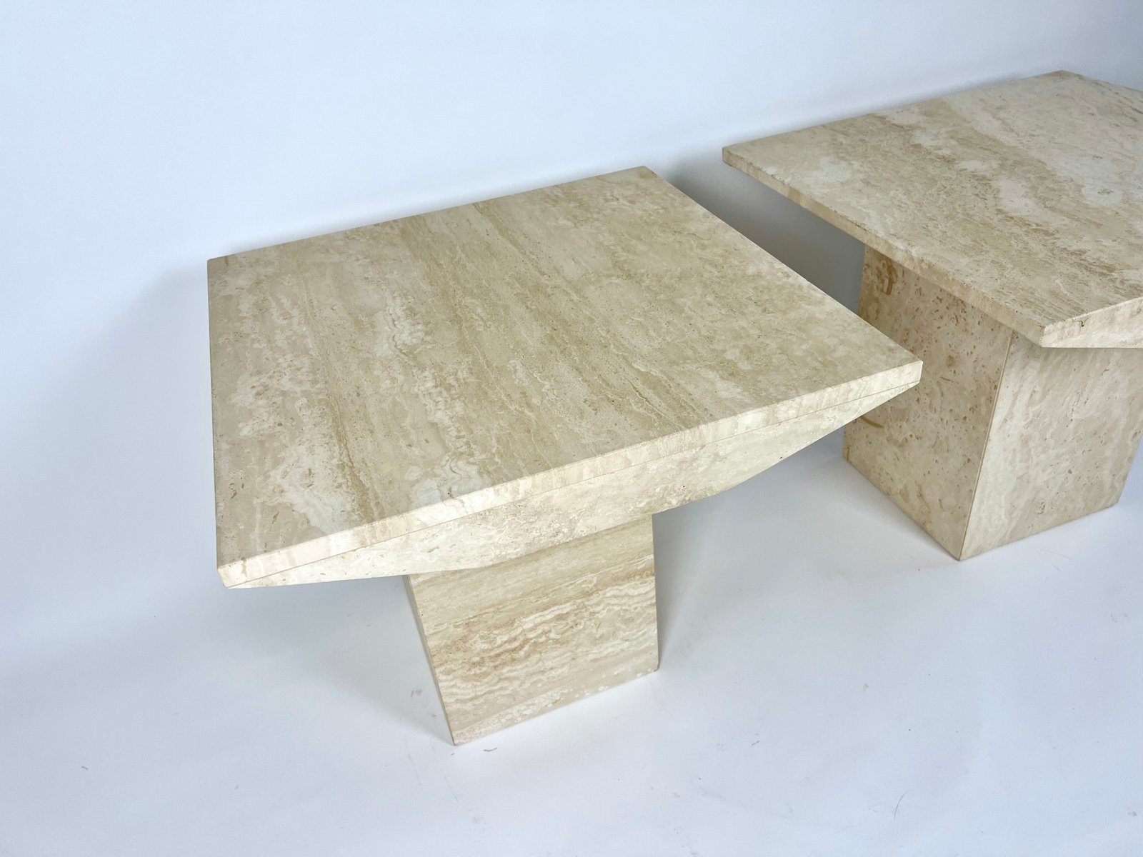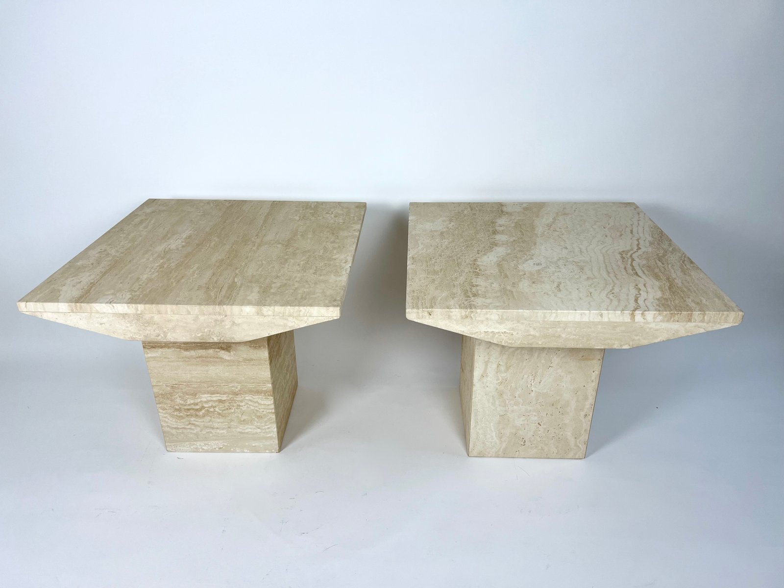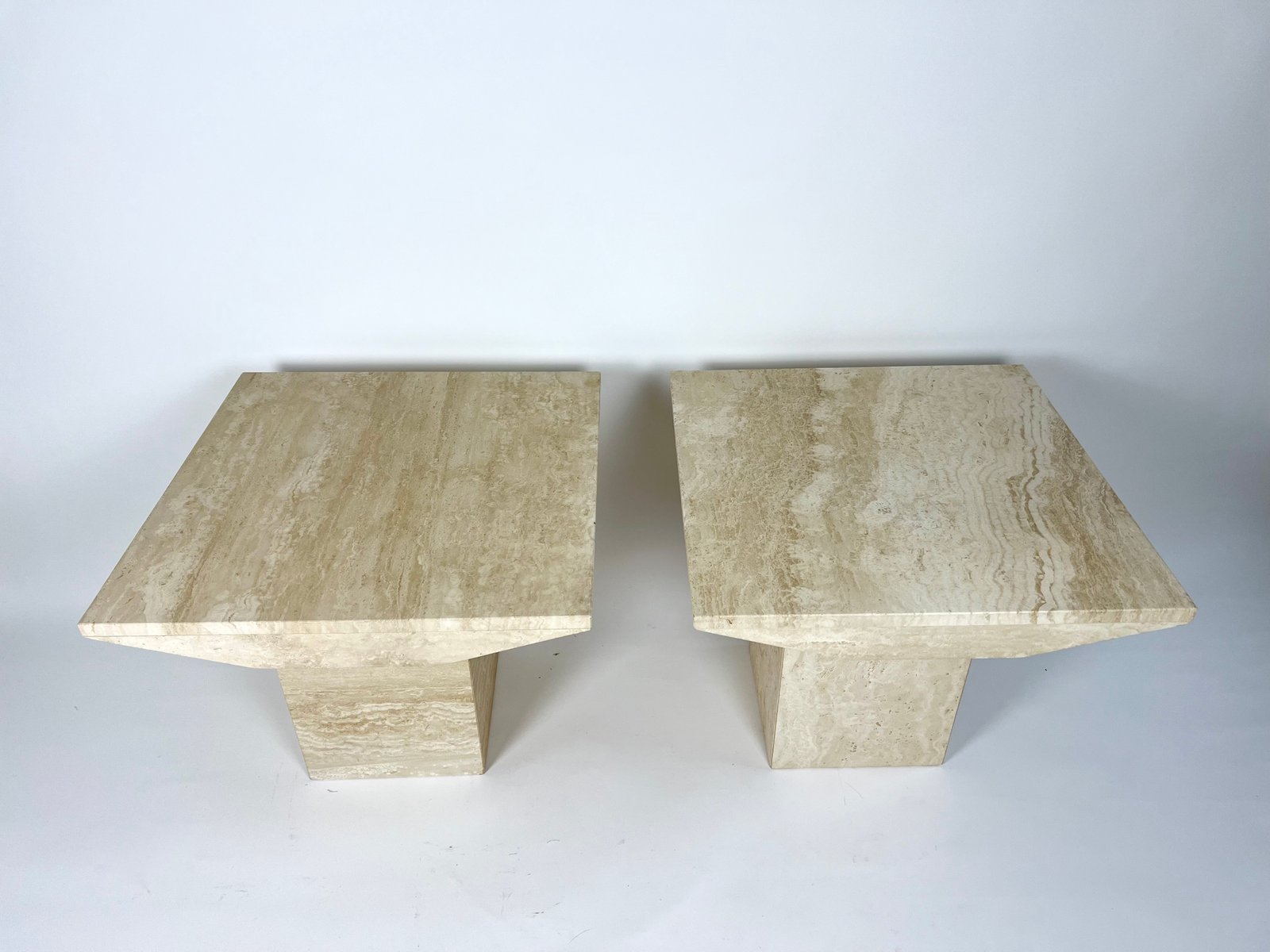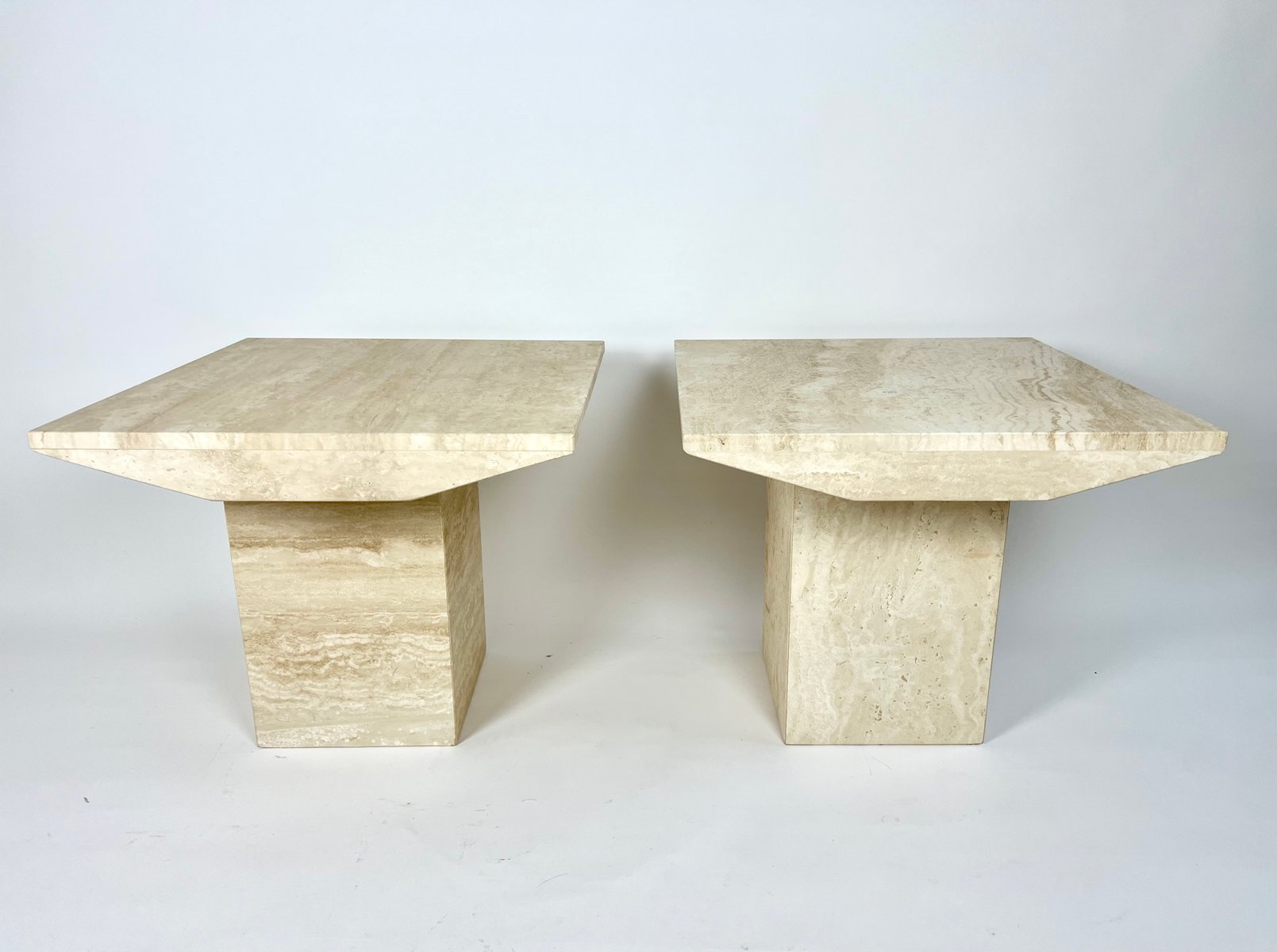 Vintage Square Side Tables in Natural Travertine Stone, Set of 2