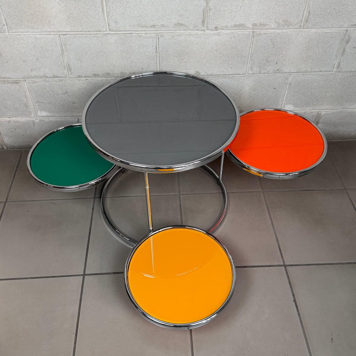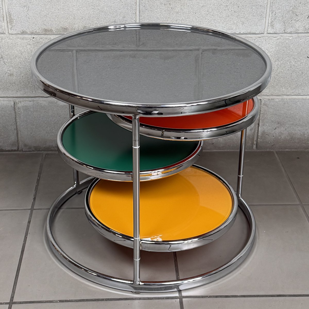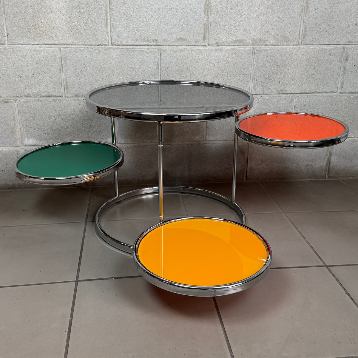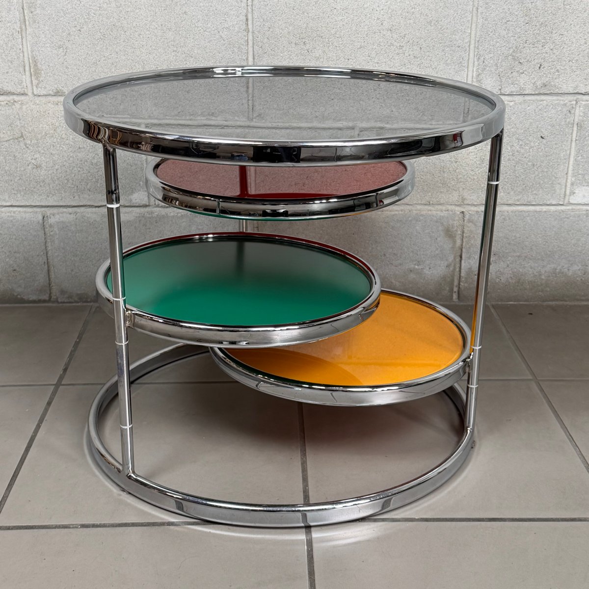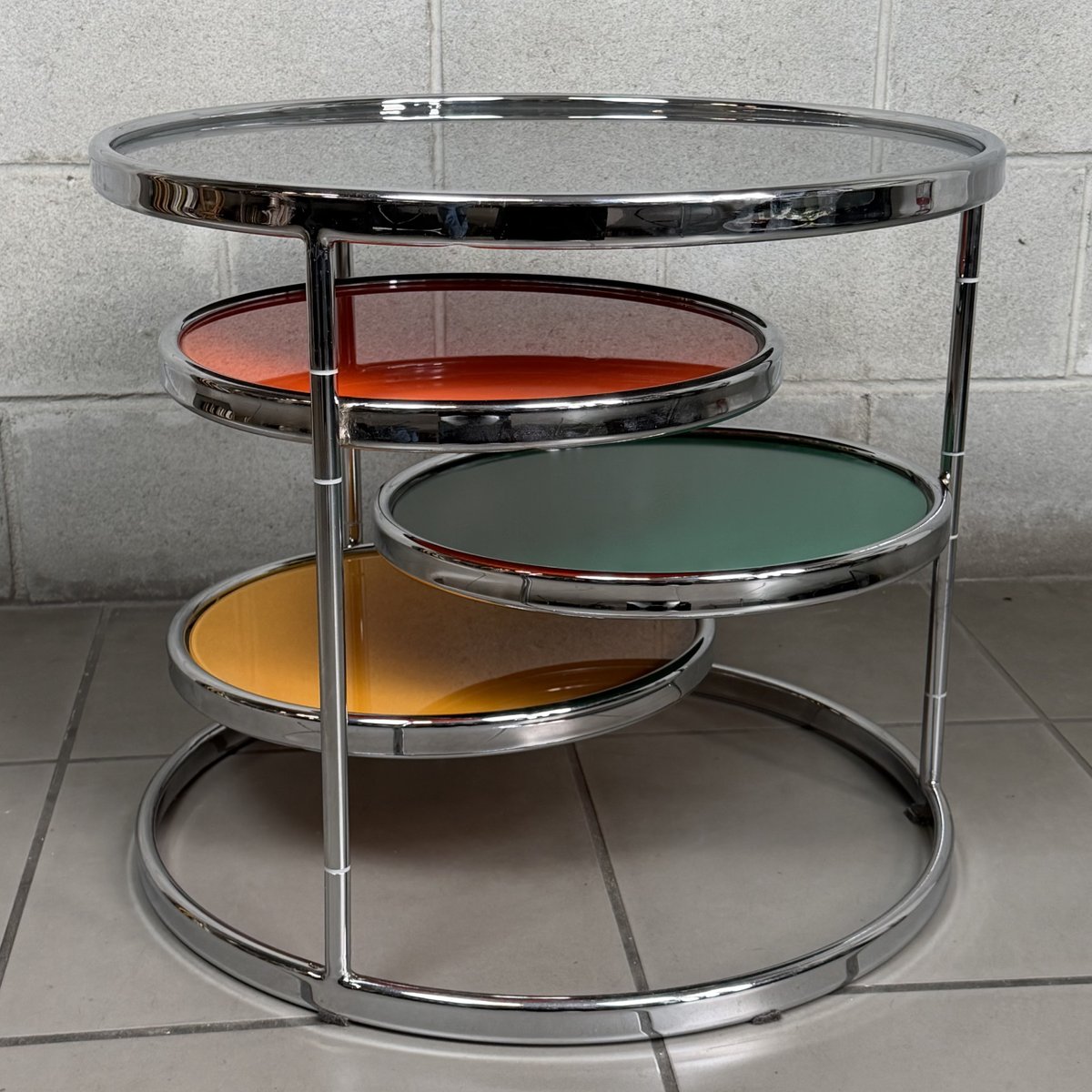 Vintage Swivel Coffee Table in Chrome and Stained Glass by Milo Baughman, 1960s