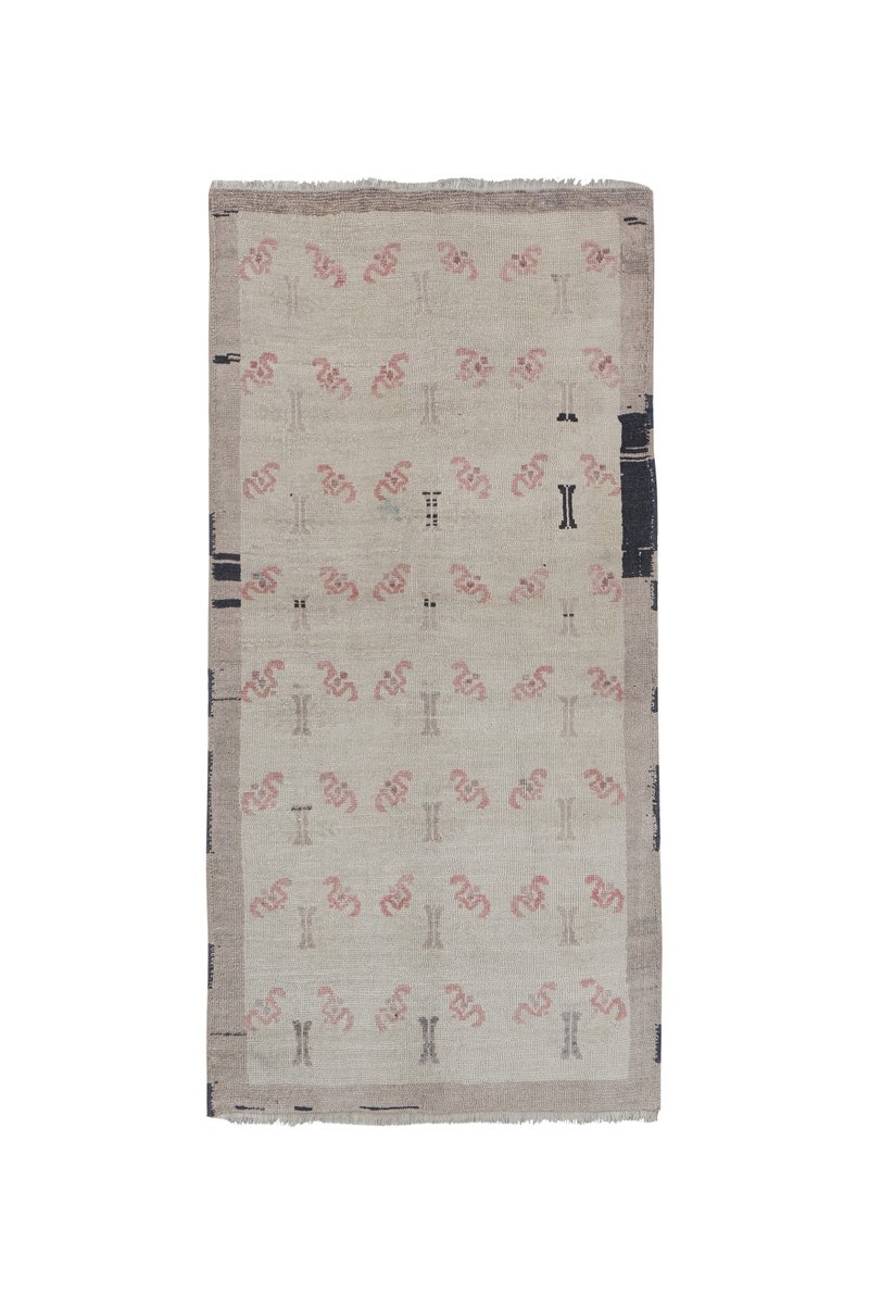 Vintage Turkish Faded Light Gray Oushak Rug
