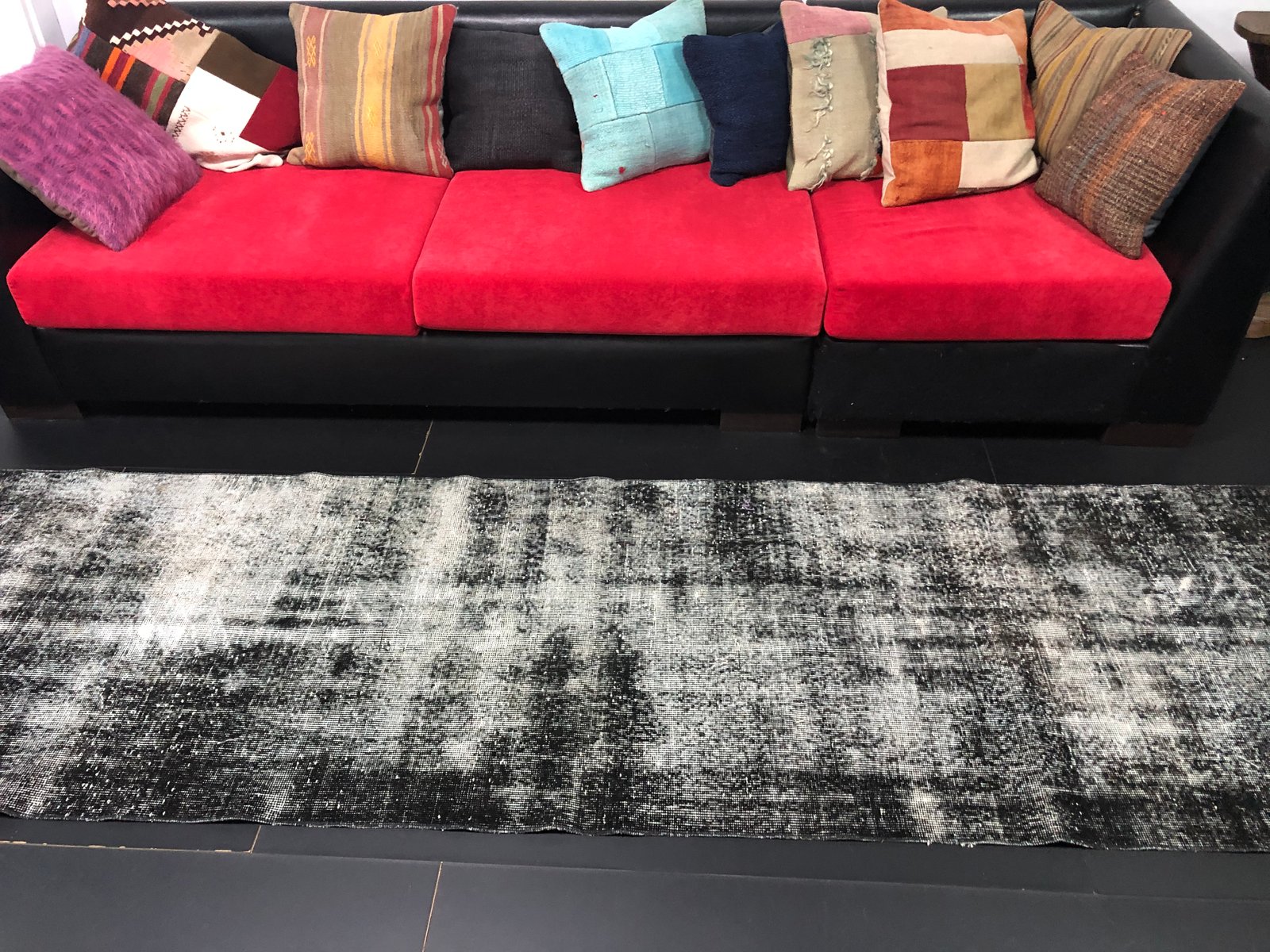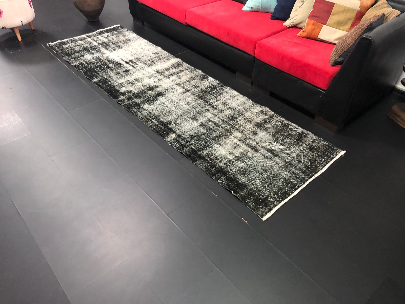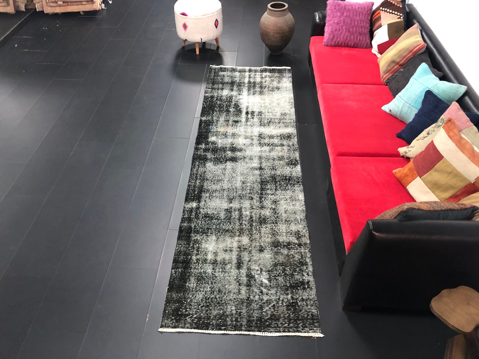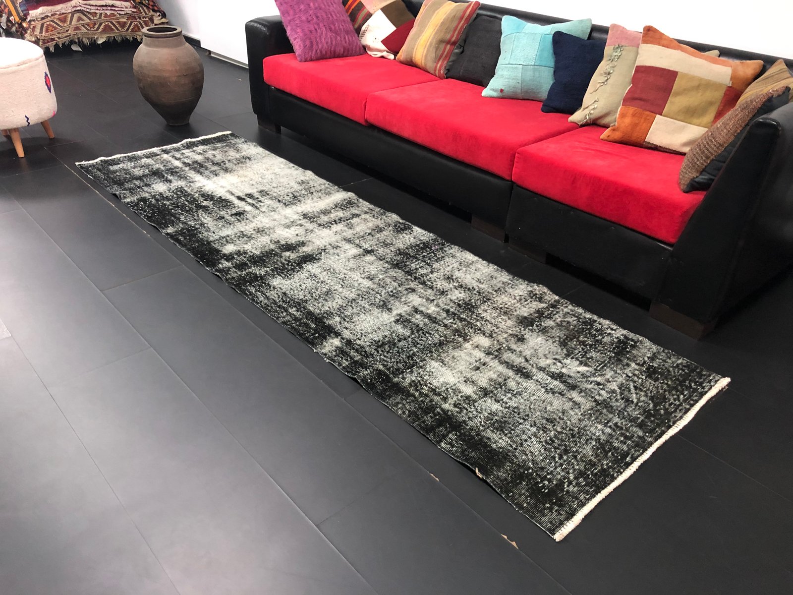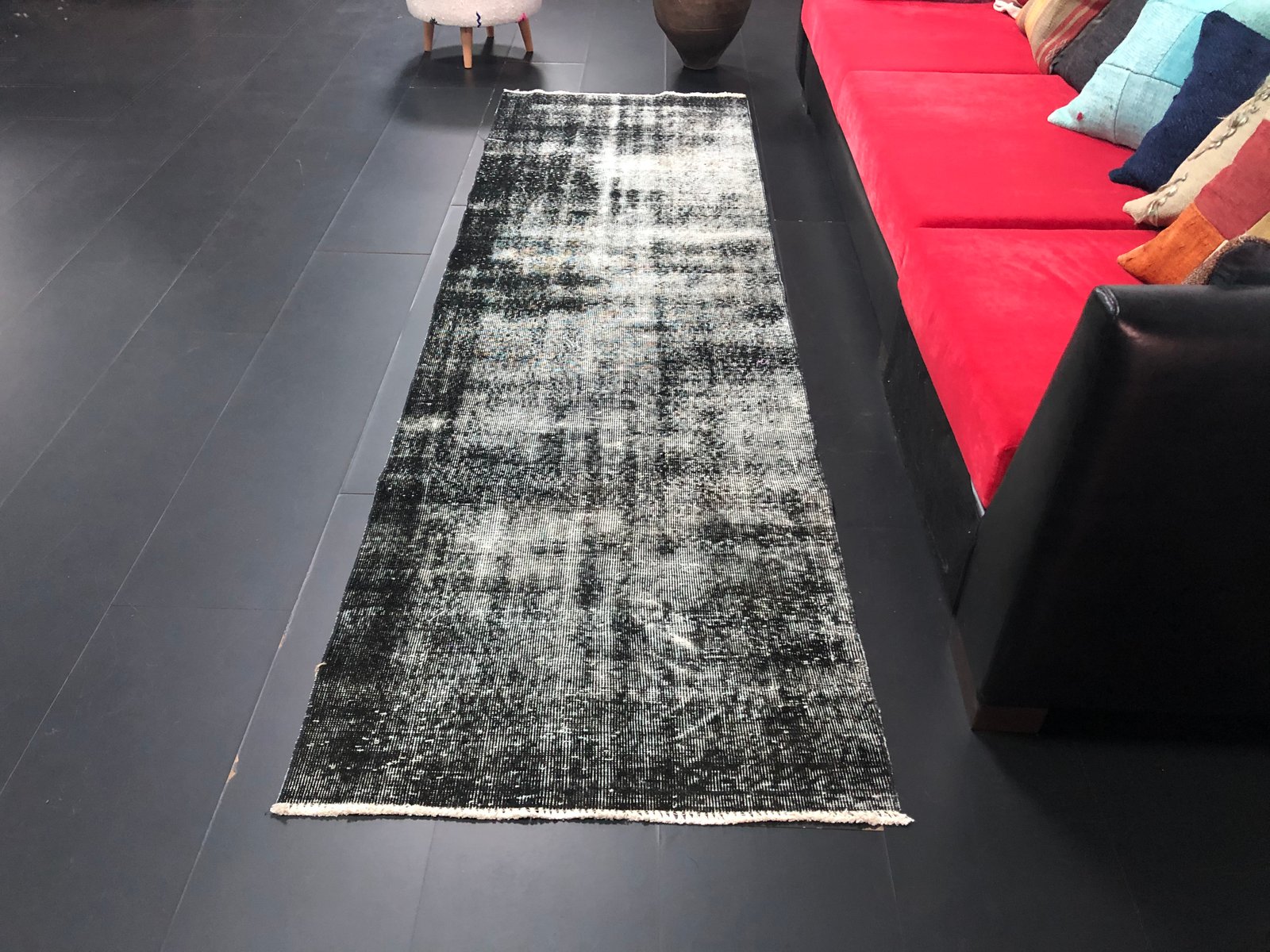 Vintage Turkish Ombre Design Black Runner Rug