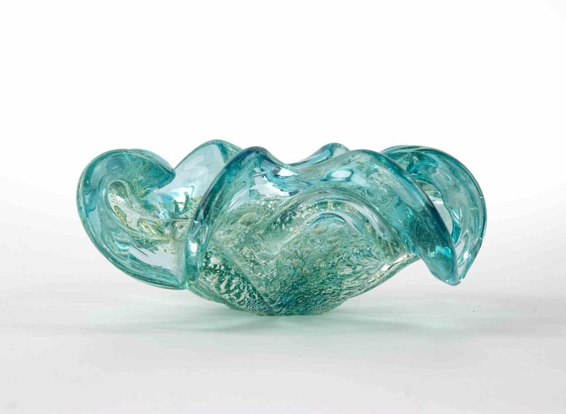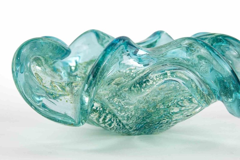 Vintage Turquoise Glass Bowl attributed to Barovier and Toso, 1950s