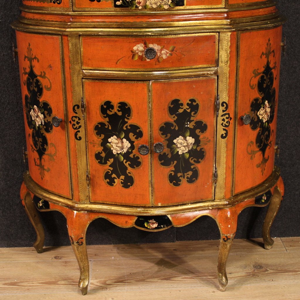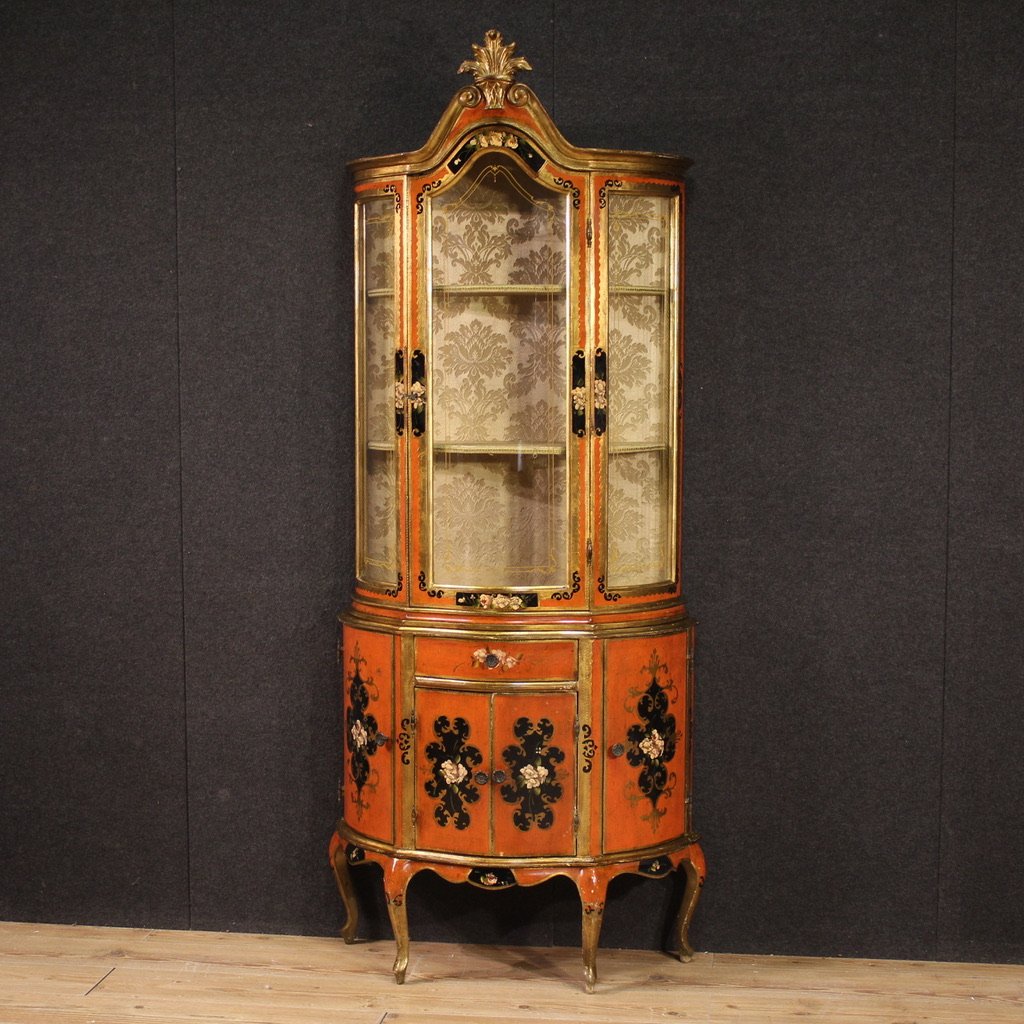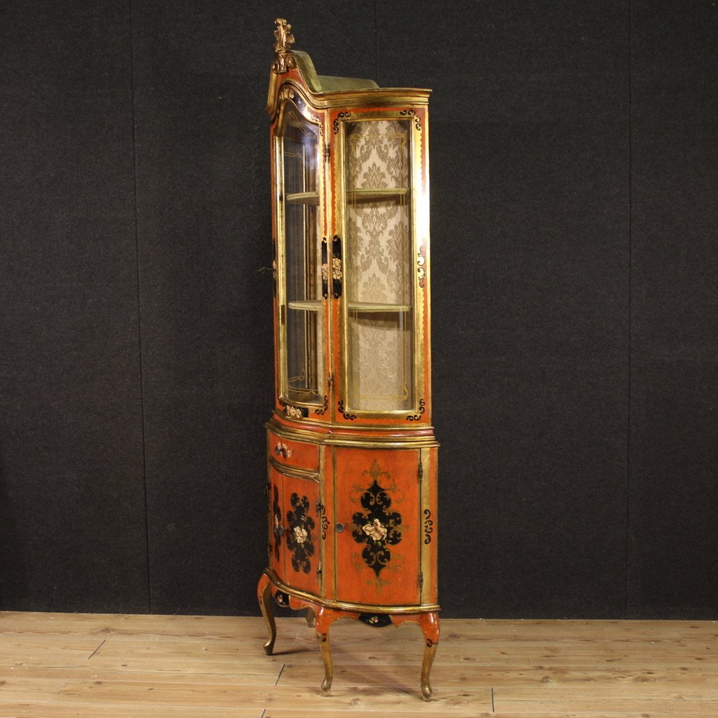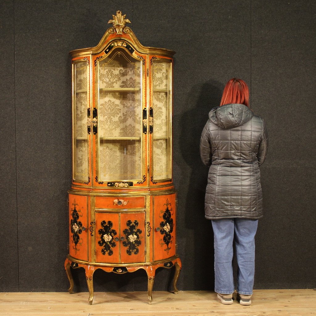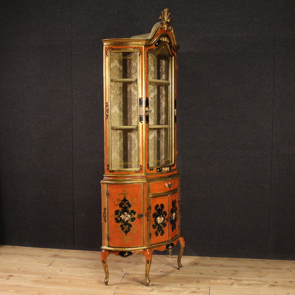 Vintage Tuscan Lacquered and Painted Display Cabinet, 1970