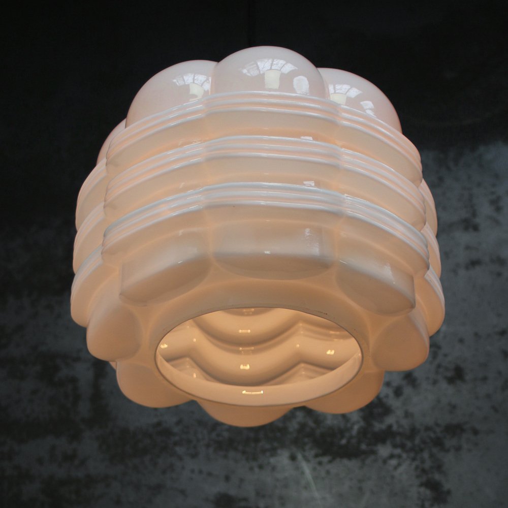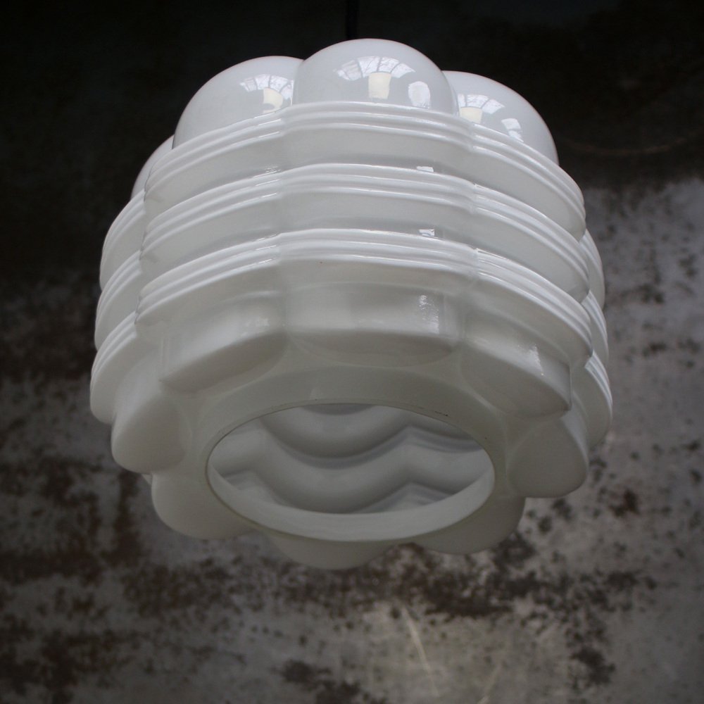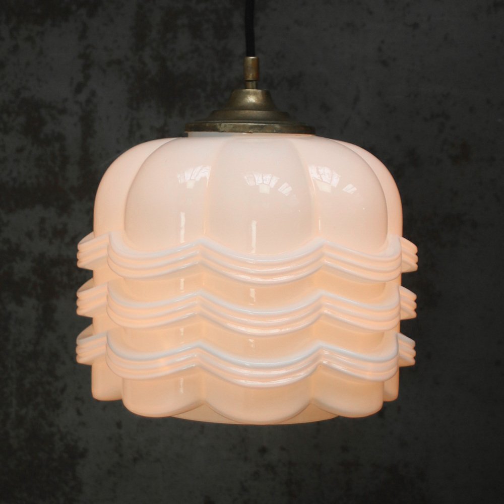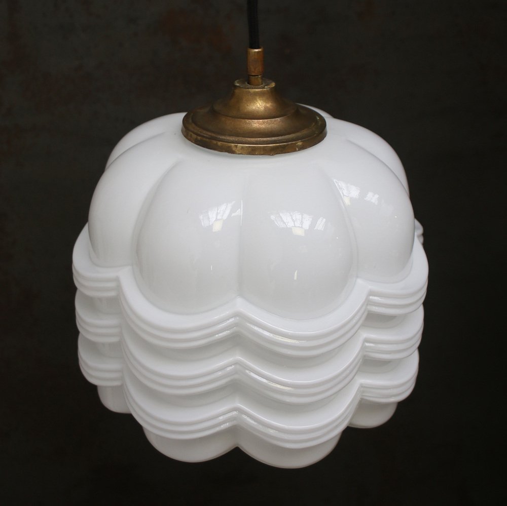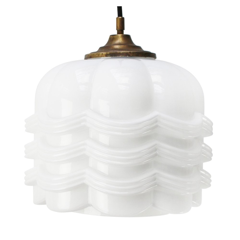 Vintage White Opaline Glass and Brass Pendant Lamp