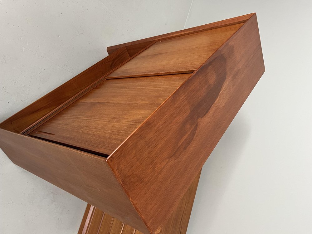Danish furniture designer and producer Poul Buch Hundevad was born in Vamdrup in 1917. Hundevad trained as a carpenter before establishing his own cabinetmaking shop and furniture factory, Hundevad & Co., at the beginning of the 1950s in his hometown. The company produced many of the founder’s own designs, alongside the designs of Danish designers Kay Ingemann Iversen, Carlo Jensen, Harald Plum, Mogens Plum, and Kaj Winding.
