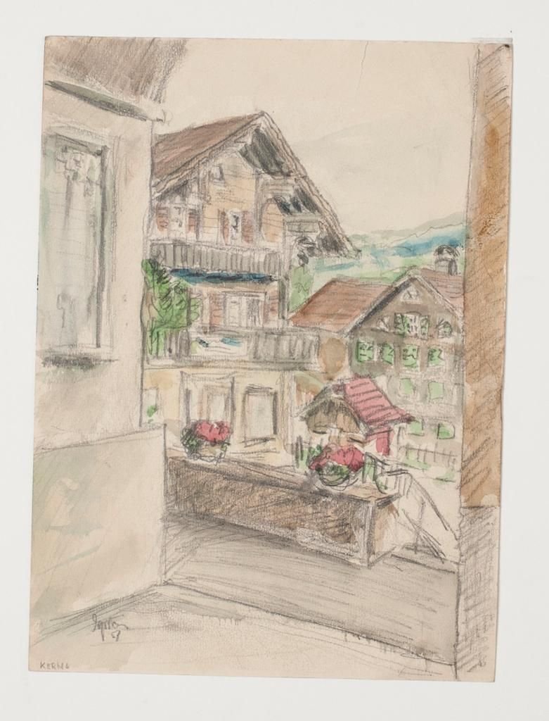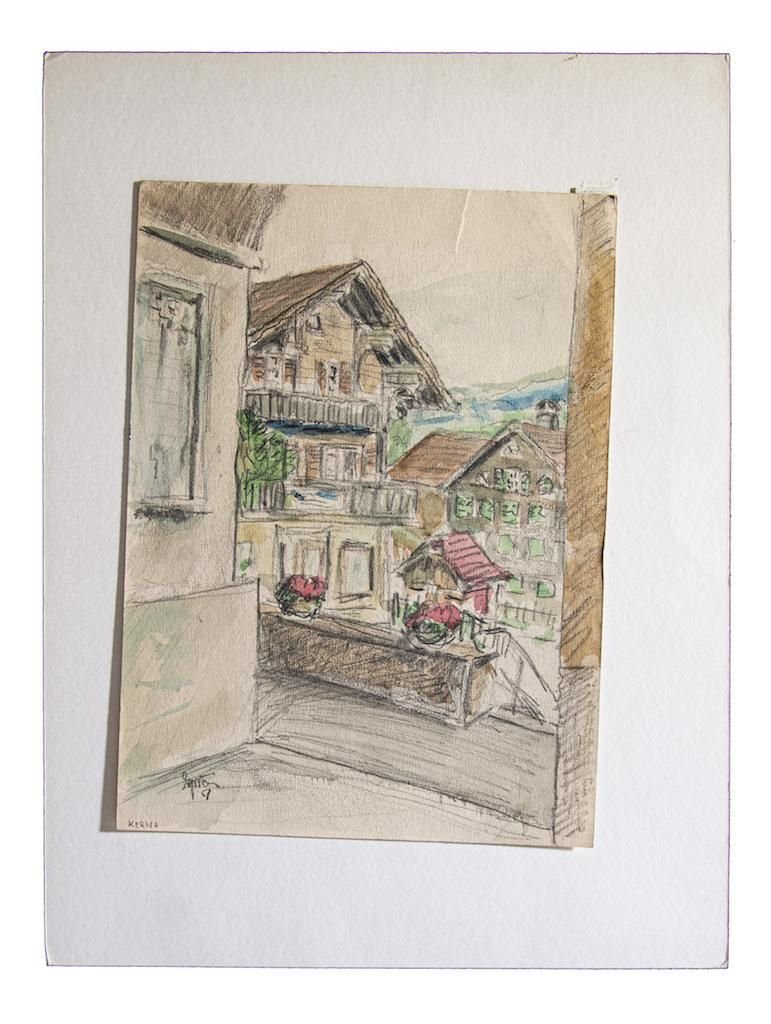 Werner Epstein - Mountain Village - Original Pencil and Pastel Drawing - 1957