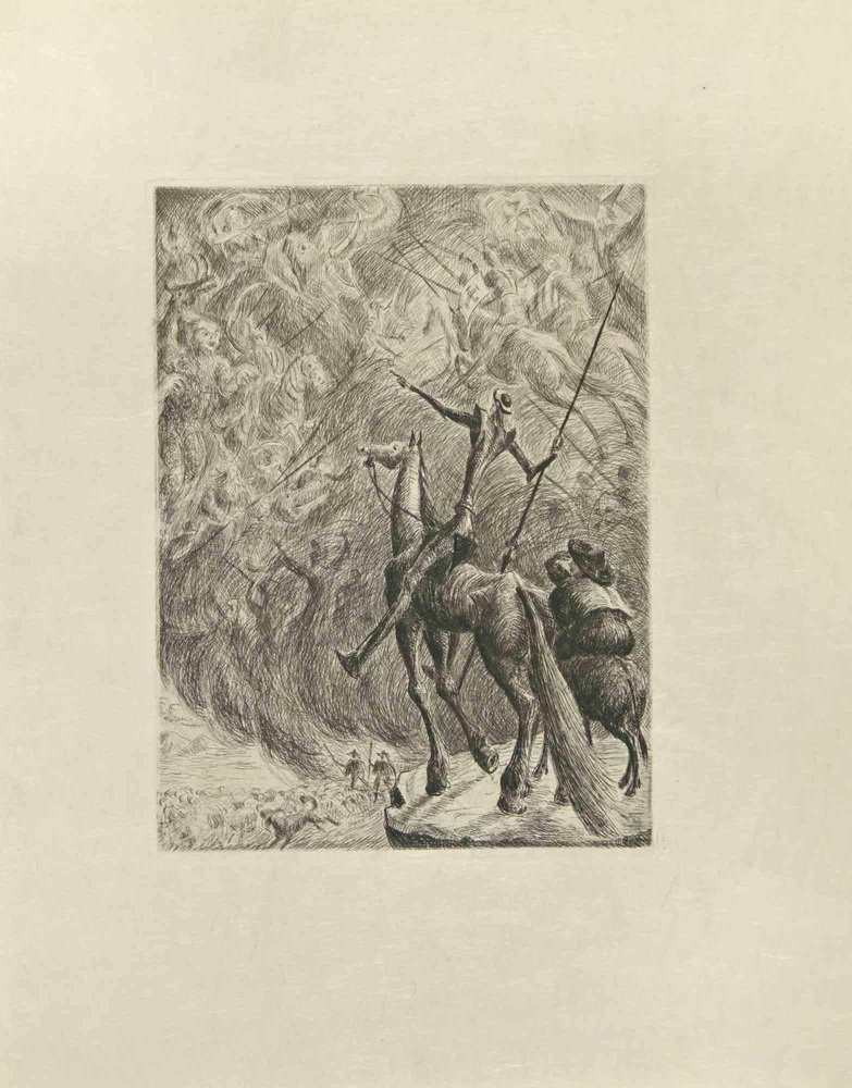 Wladyslaw Jahl, Don Quixote in Battle, Etching, 1951