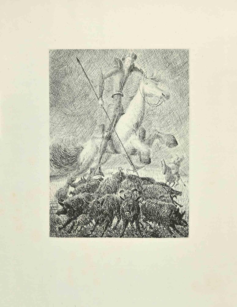 Wladyslaw Jahl, Don Quixote's Hunt, Etching, 1951
