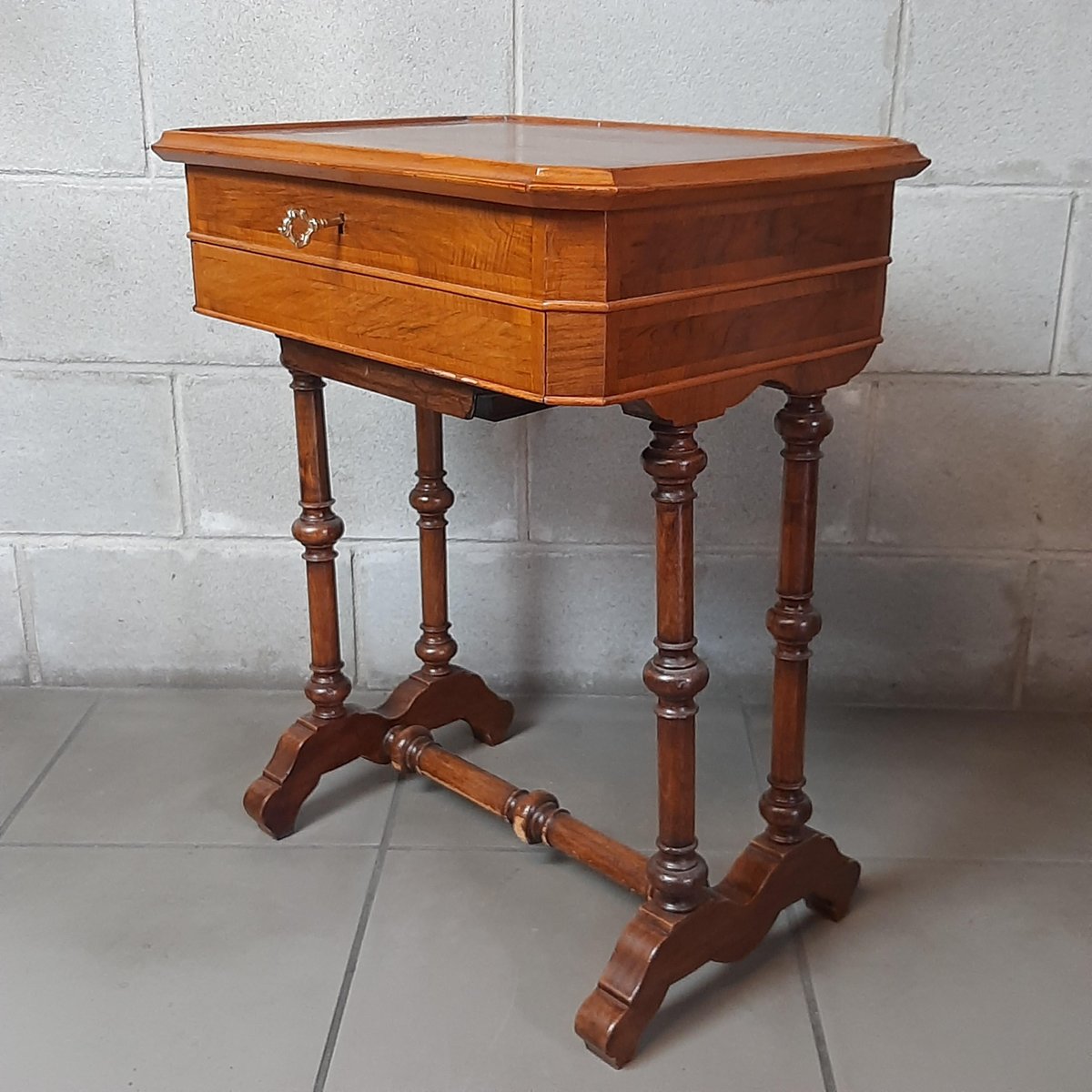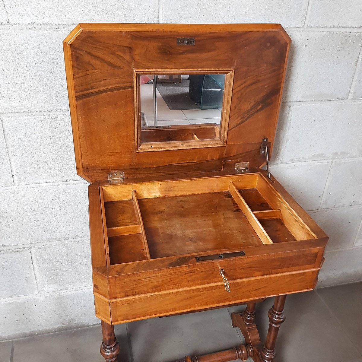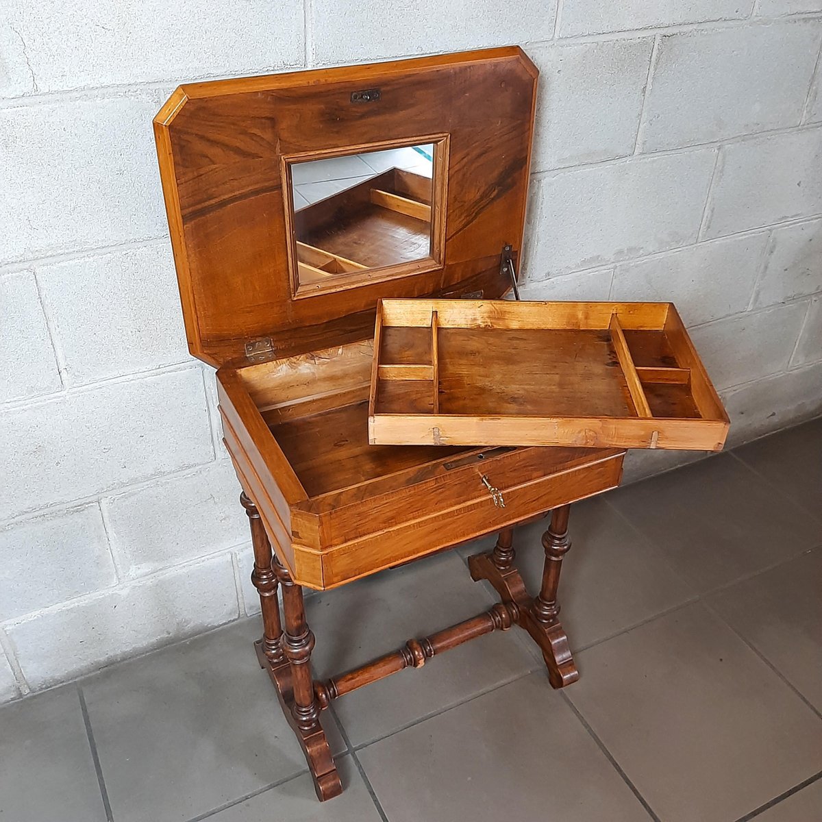 Wooden Work Table with Drawers and Mirror, 1900