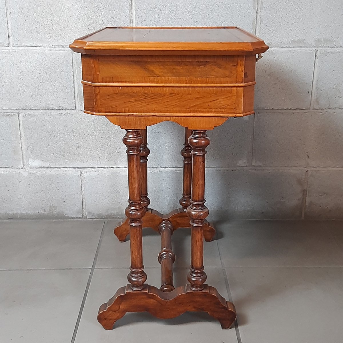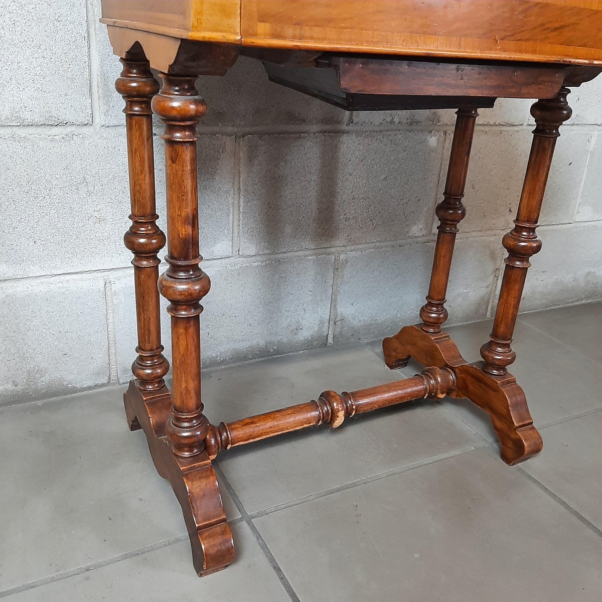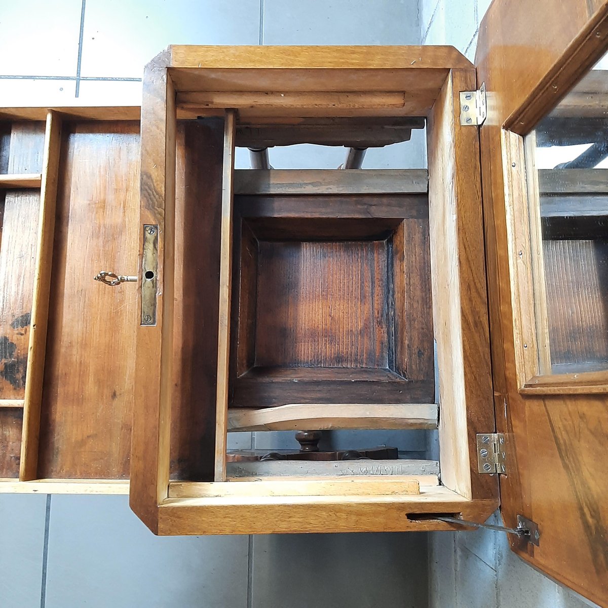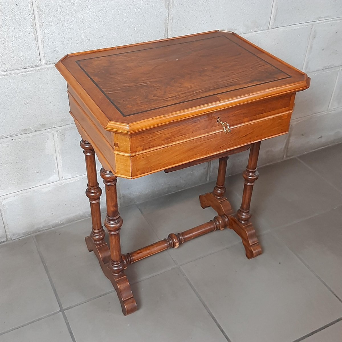 Wooden Work Table with Drawers and Mirror, 1900