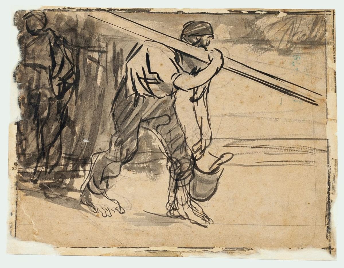 Worker - Ink and Pencil Drawing by G. Galantara - Early 20th Century Early 20th Century