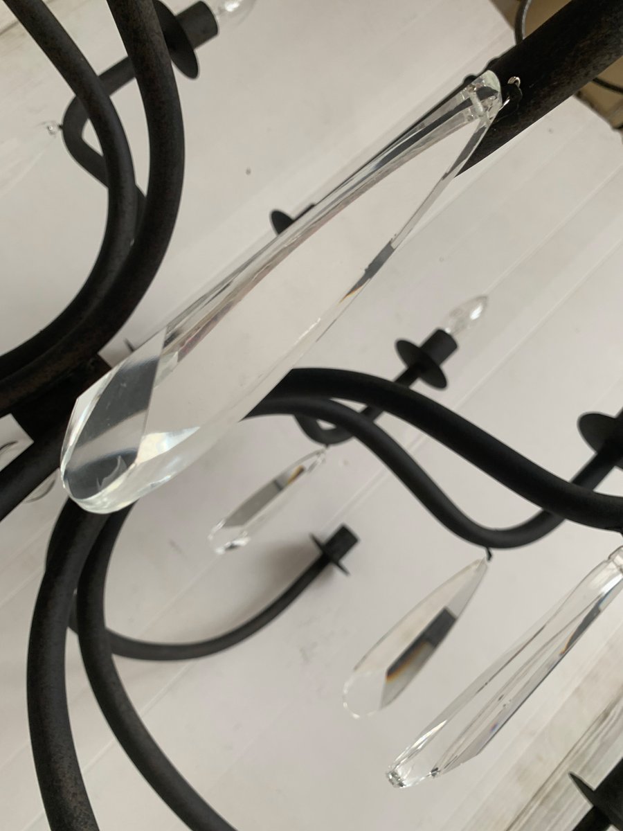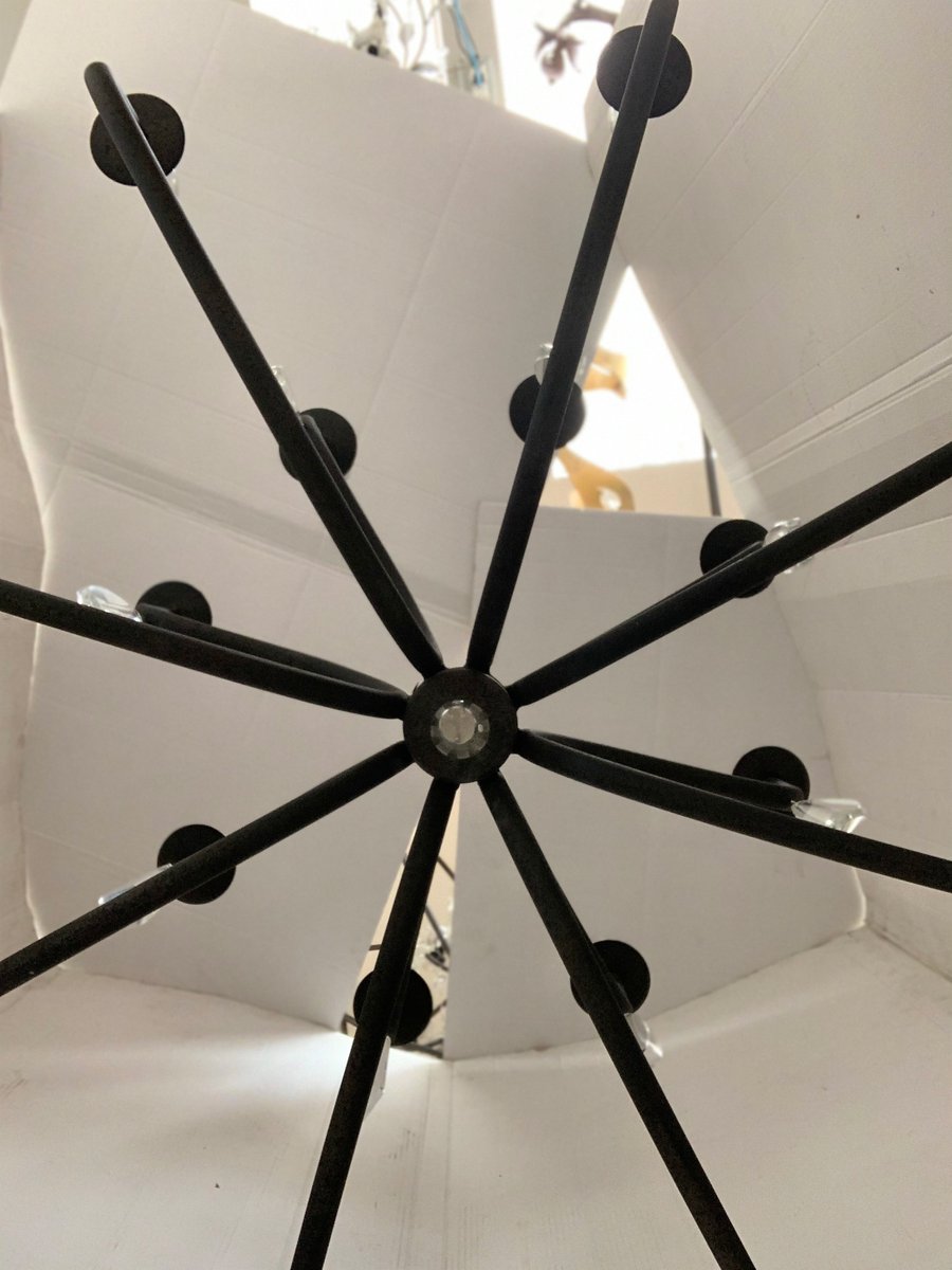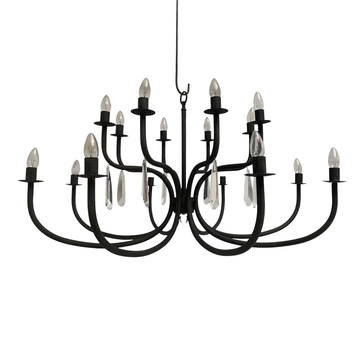 Wrought Iron Florentine Art 20-Light Chandelier in Matte Black Metal from Simoeng