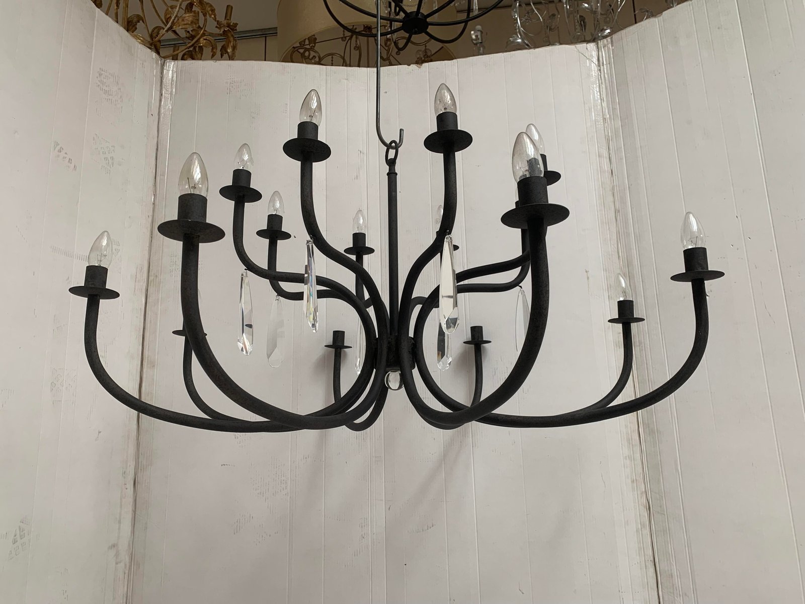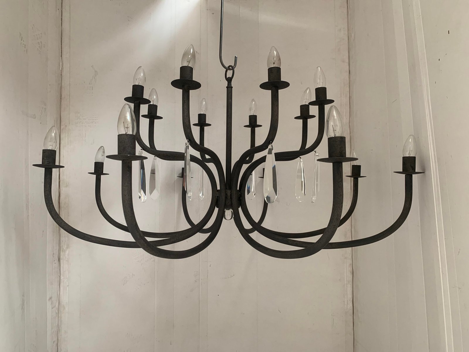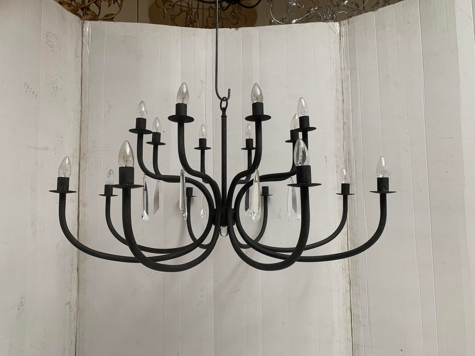 Wrought Iron Florentine Art 20-Light Chandelier in Matte Black Metal from Simoeng