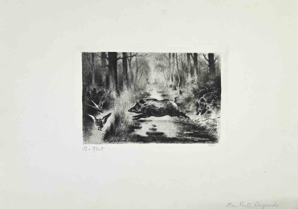 Xavier de Poret, The Wild Boars, Etching, 1934